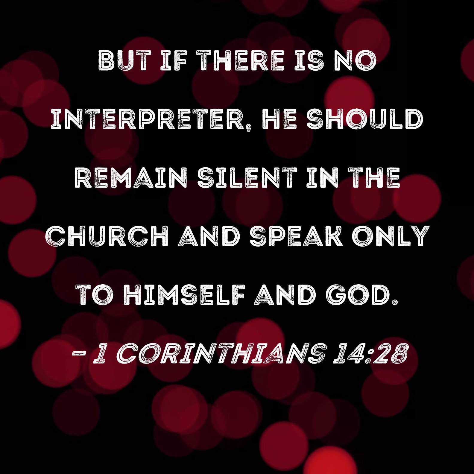 1 Corinthians 14:28 But if there is no interpreter, he should remain silent in the church and speak only to himself and God.