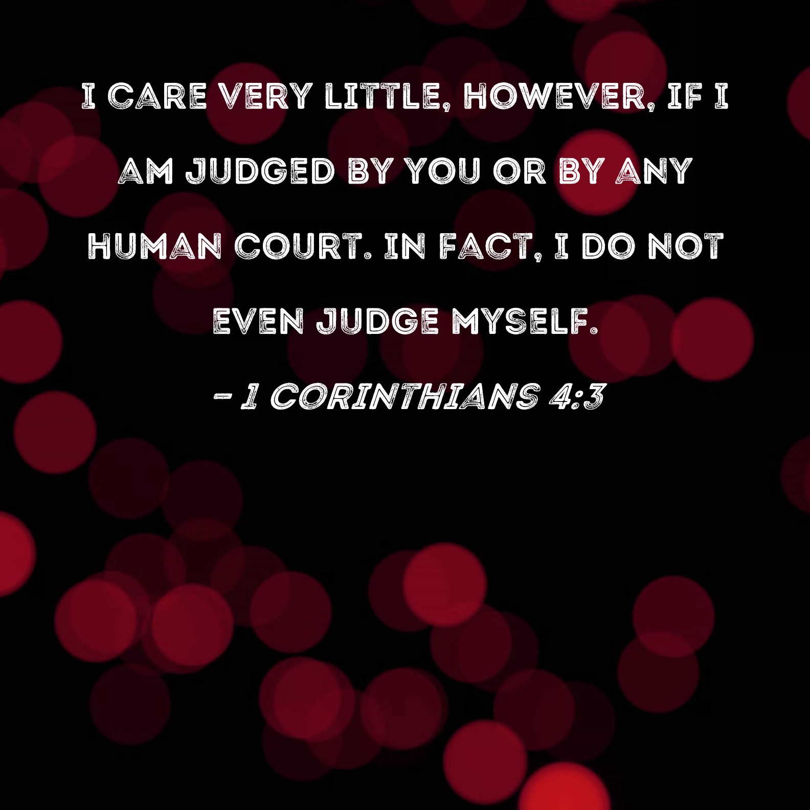 1 Corinthians 4:3 I care very little, however, if I am judged by you or by any human court. In fact, I do not even judge myself.