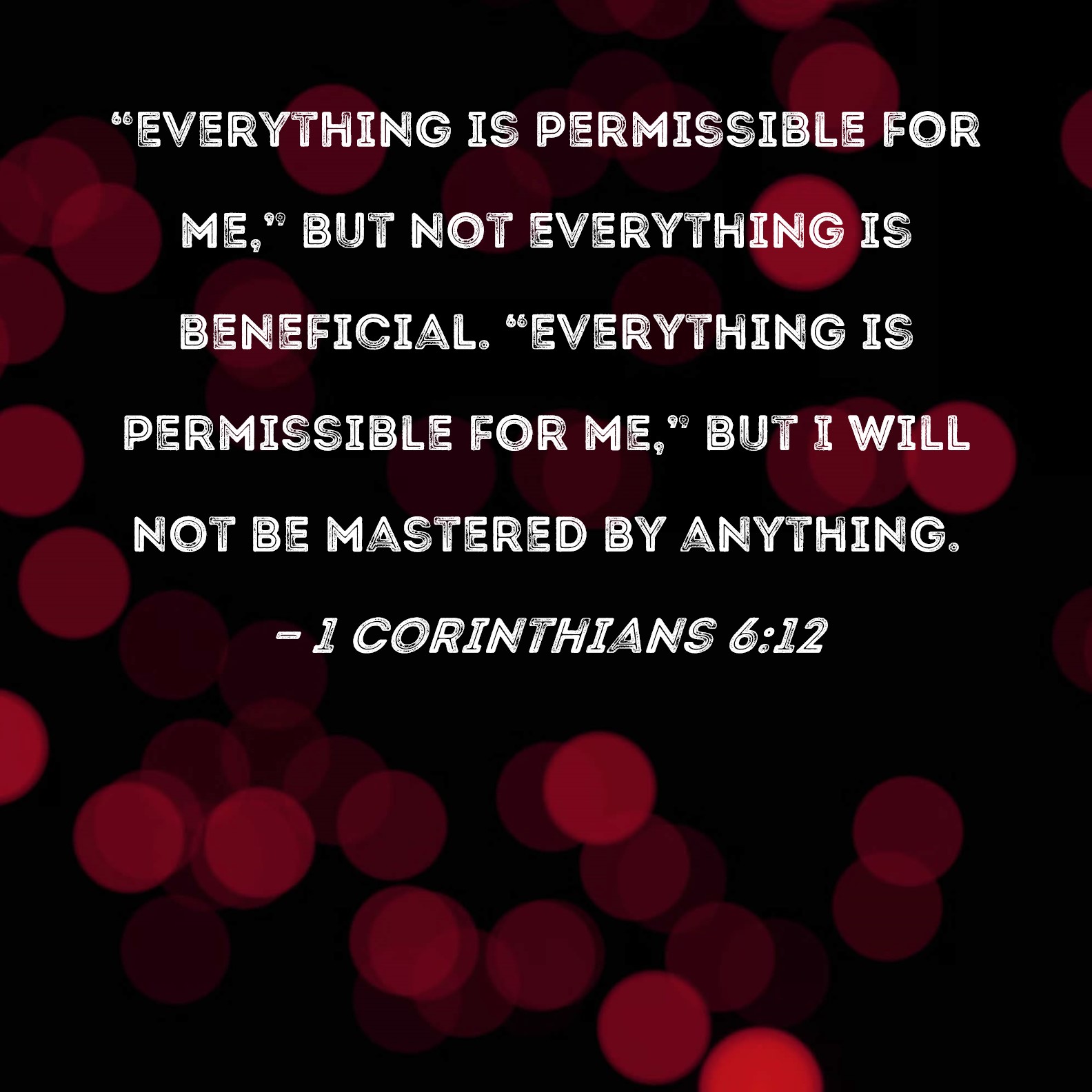 1 Corinthians 6:12 "Everything is permissible for me," but not everything is beneficial. "Everything is permissible for me," but I will not be mastered by anything.