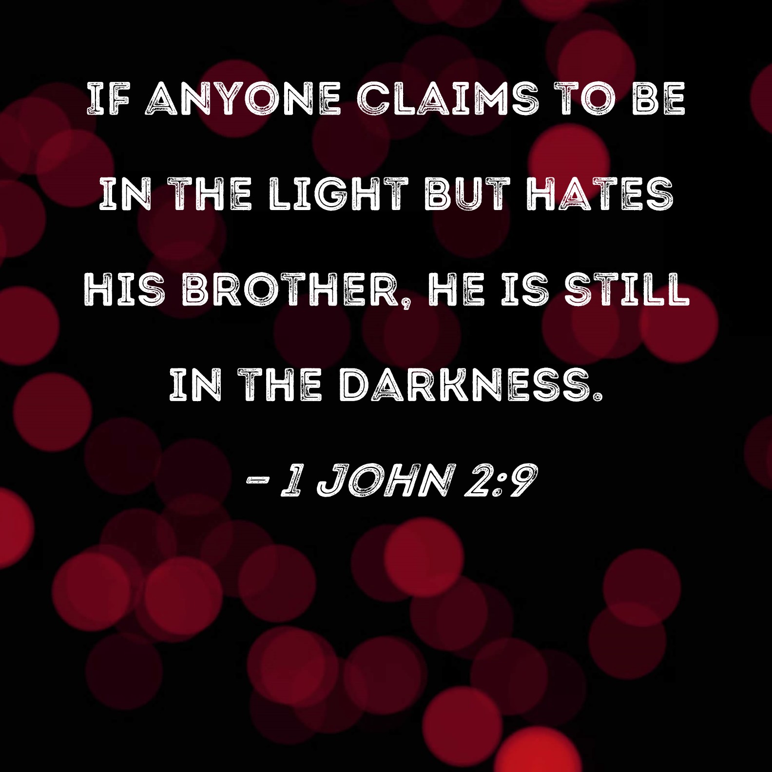 1 John 2:9 If anyone claims to be in the light but hates his brother, he is still in the darkness.