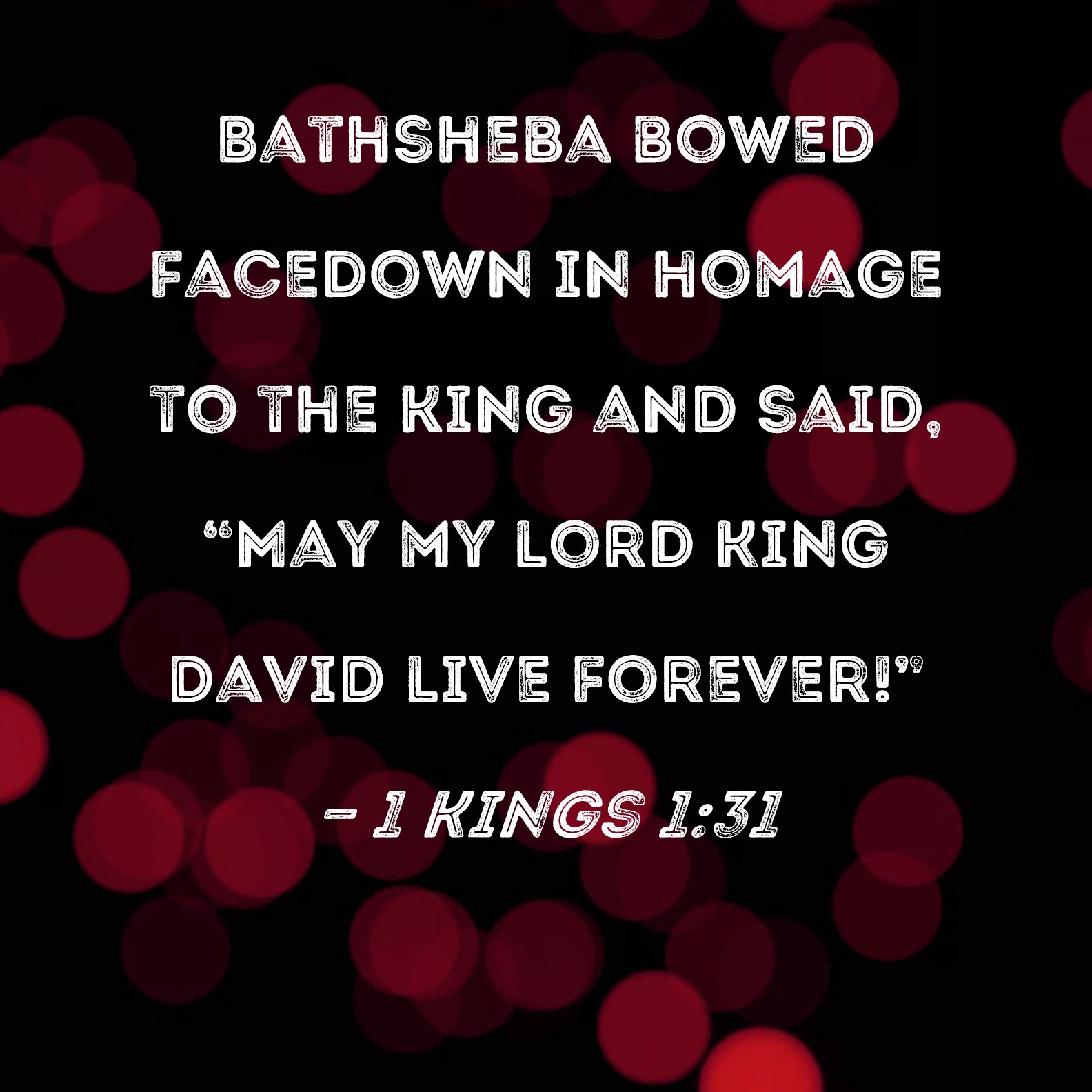 1 Kings 1:31 Bathsheba bowed facedown in homage to the king and said, "May my lord King David live forever!"