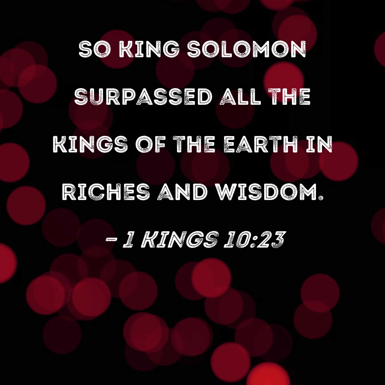 1 Kings 10:23 So King Solomon surpassed all the kings of the earth in riches and wisdom.