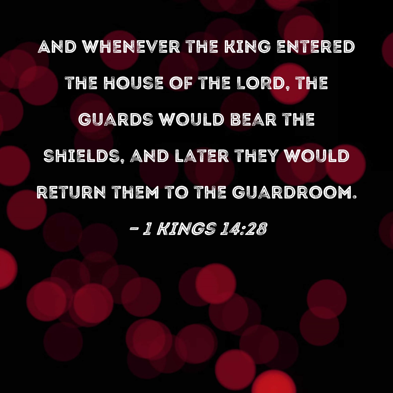 1 Kings 14:28 And whenever the king entered the house of the LORD, the guards would bear the shields, and later they would return them to the guardroom.
