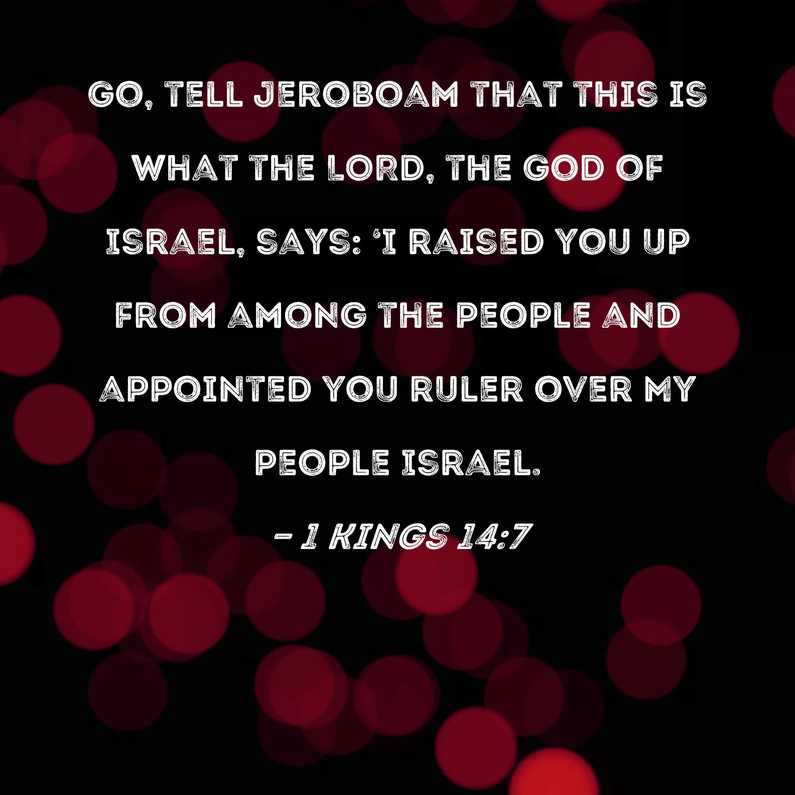 1 Kings 14:7 Go, tell Jeroboam that this is what the LORD, the God of Israel, says: 'I raised you up from among the people and appointed you ruler over My people Israel.