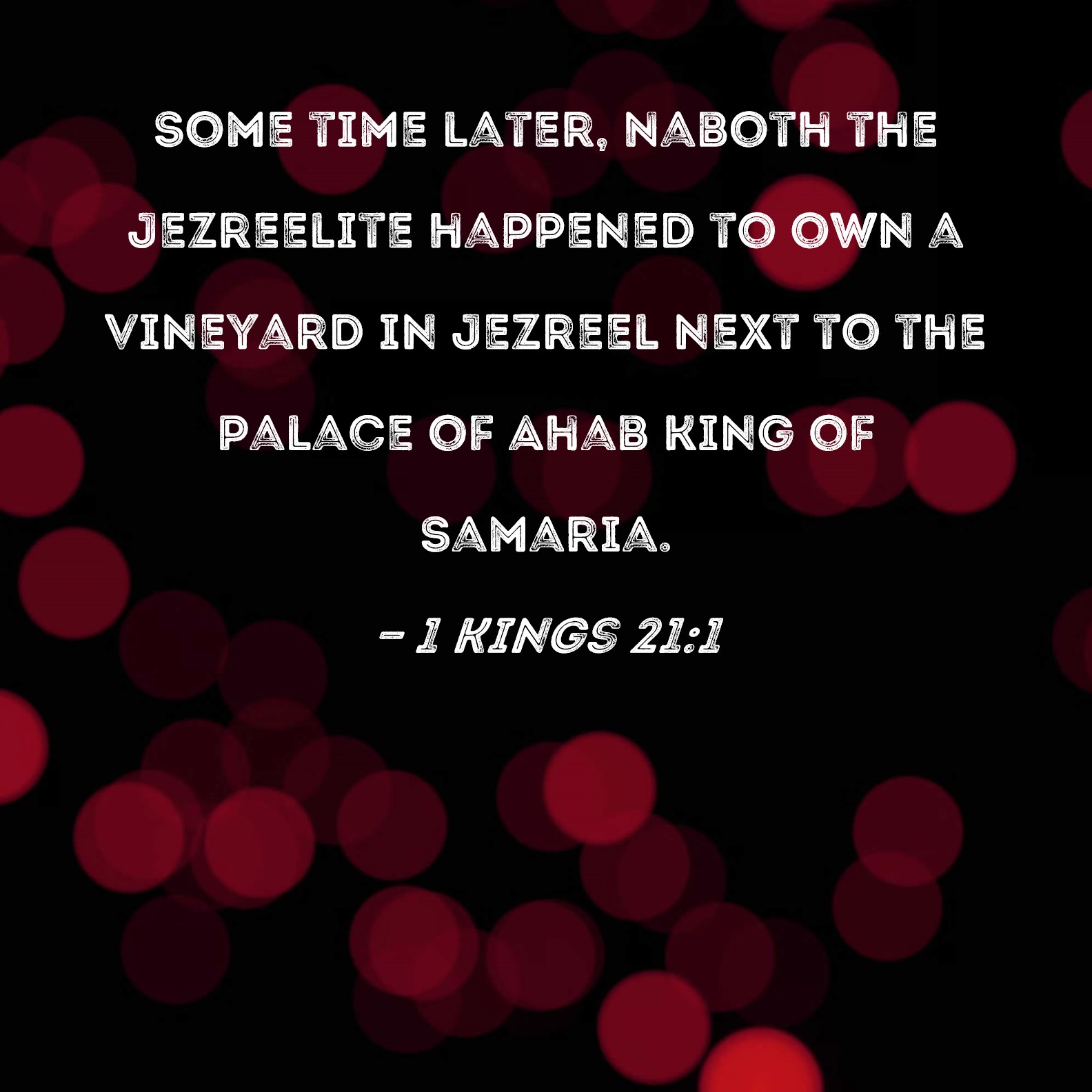 1 Kings 21:1 Some time later, Naboth the Jezreelite happened to own a vineyard in Jezreel next to the palace of Ahab king of Samaria.
