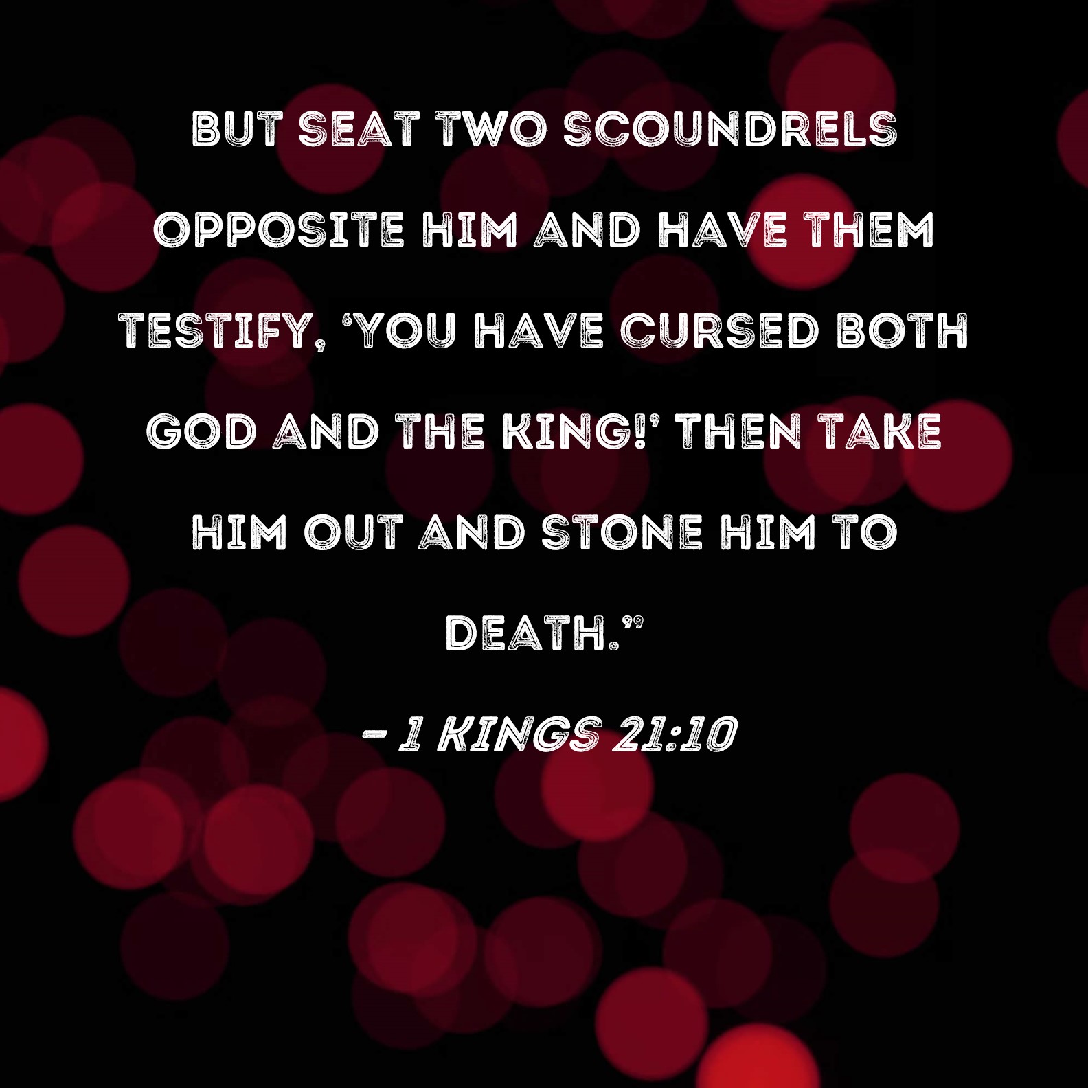 1 Kings 21:10 But seat two scoundrels opposite him and have them testify, 'You have cursed both God and the king!' Then take him out and stone him to death."