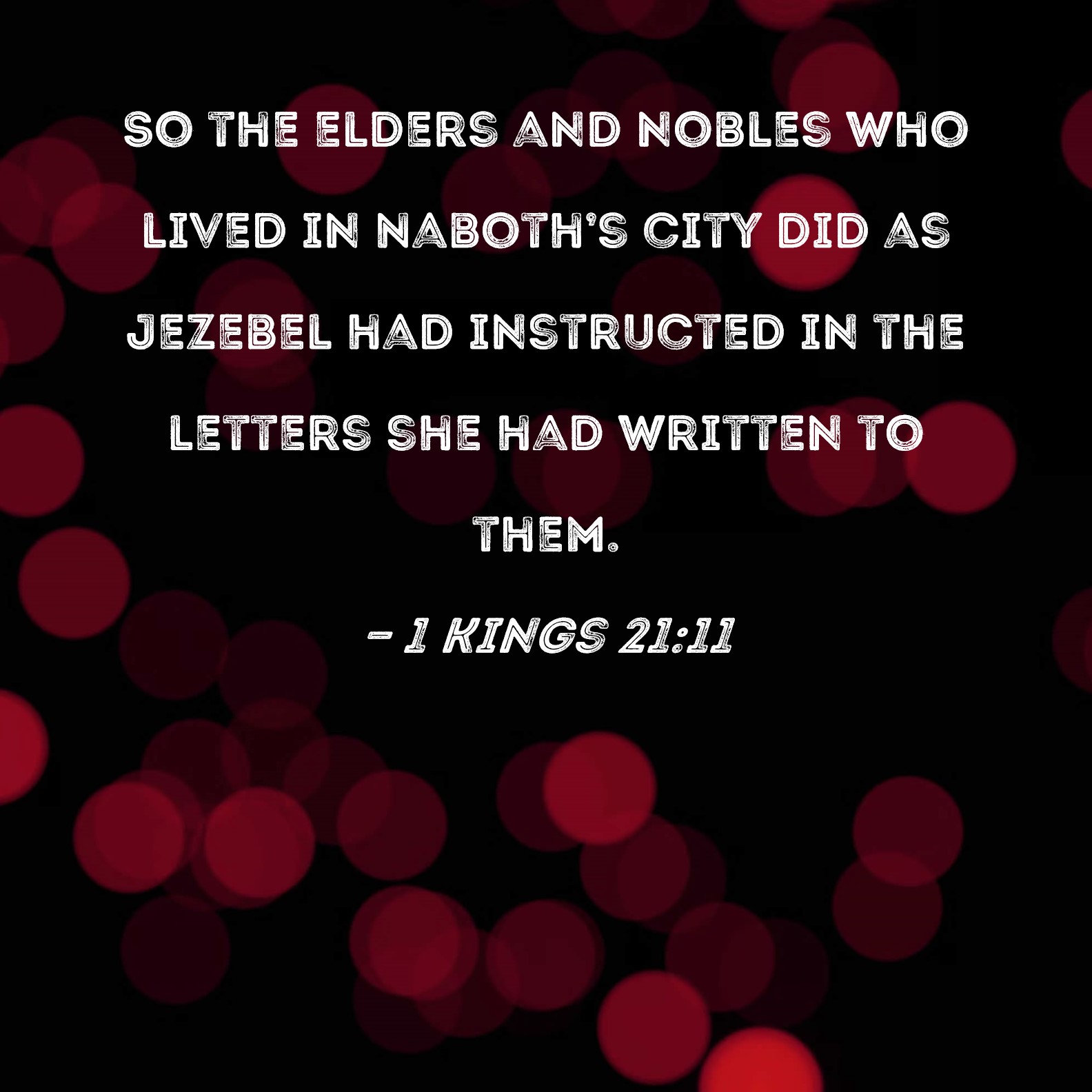 1 Kings 21:11 So the elders and nobles who lived in Naboth's city did as Jezebel had instructed in the letters she had written to them.