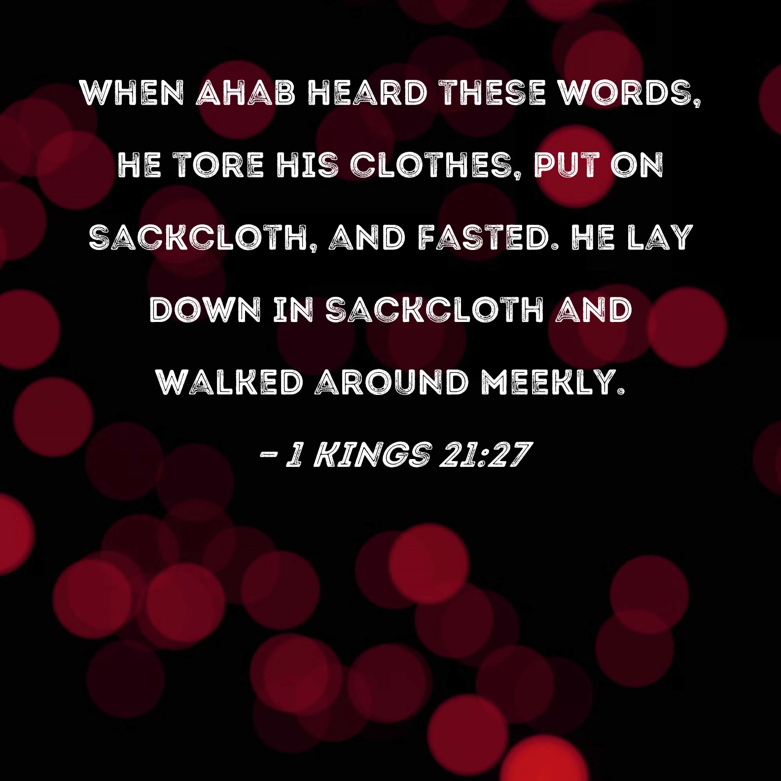 1 Kings 21:27 When Ahab heard these words, he tore his clothes, put on sackcloth, and fasted. He lay down in sackcloth and walked around meekly.