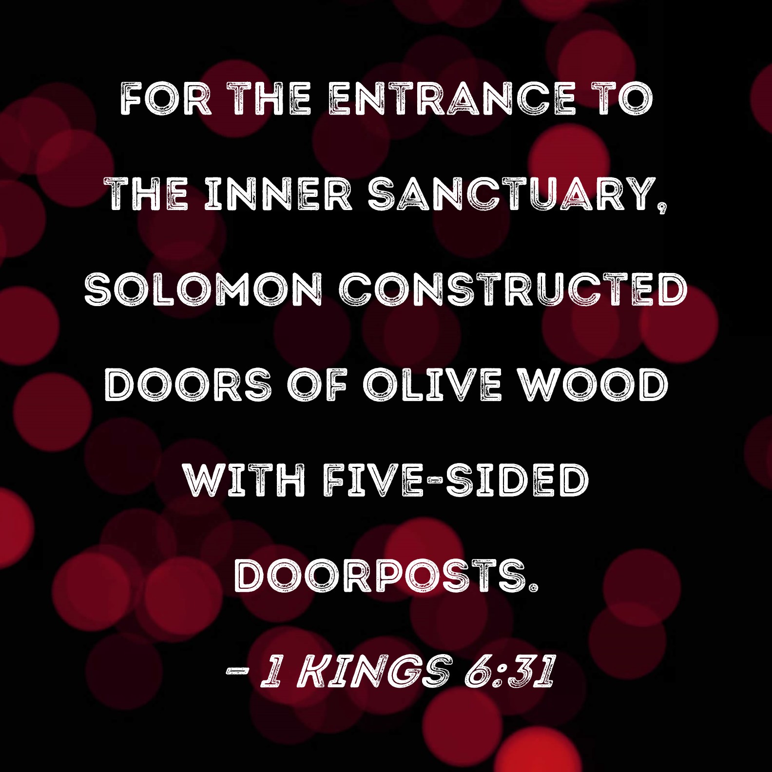 1 Kings 6:31 For the entrance to the inner sanctuary, Solomon constructed doors of olive wood with five-sided doorposts.