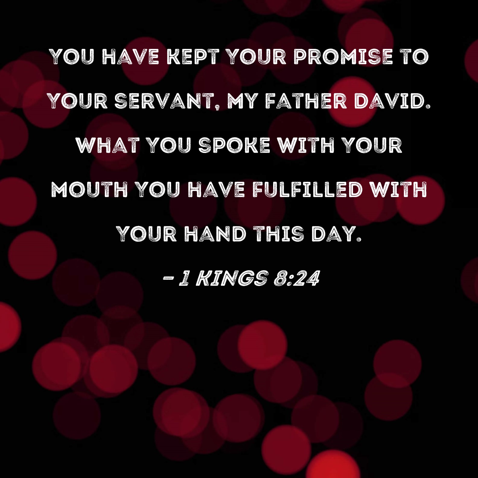 1 Kings 8:24 You have kept Your promise to Your servant, my father David. What You spoke with Your mouth You have fulfilled with Your hand this day.