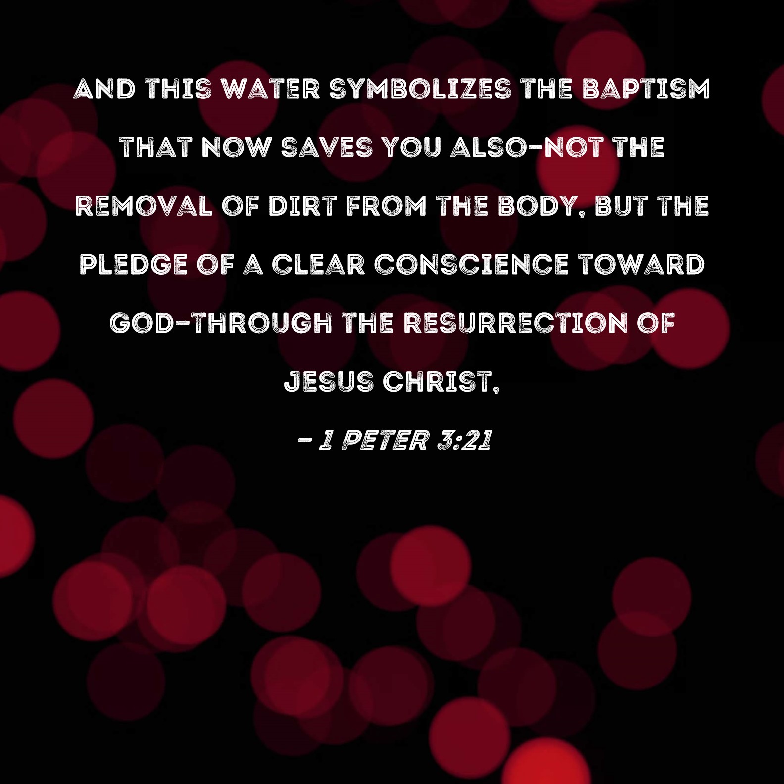 1 Peter 3:21 And this water symbolizes the baptism that now saves you also--not the removal of dirt from the body, but the pledge of a clear conscience toward God--through the resurrection of Jesus Christ,