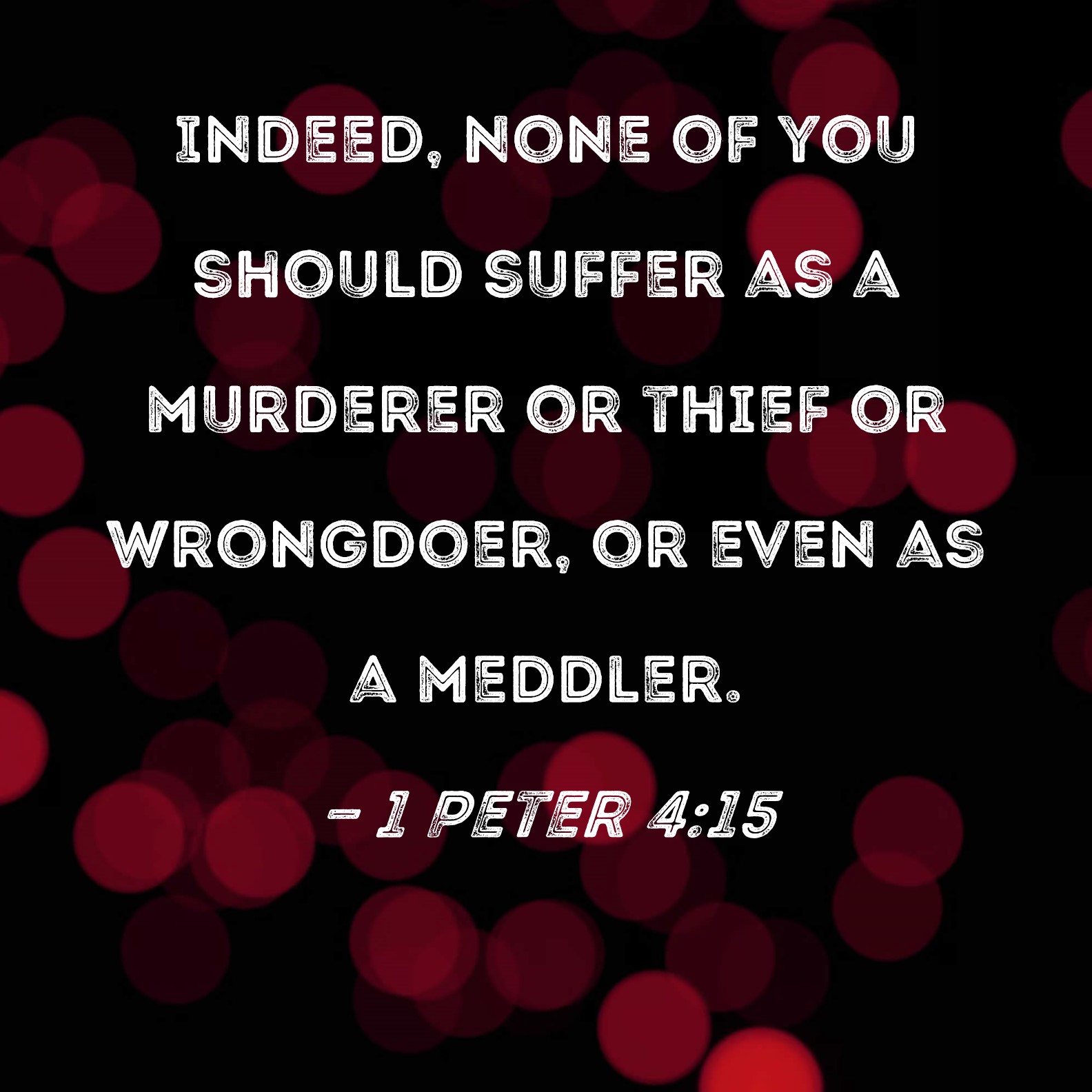 1 Peter 4:15 Indeed, none of you should suffer as a murderer or thief or wrongdoer, or even as a meddler.