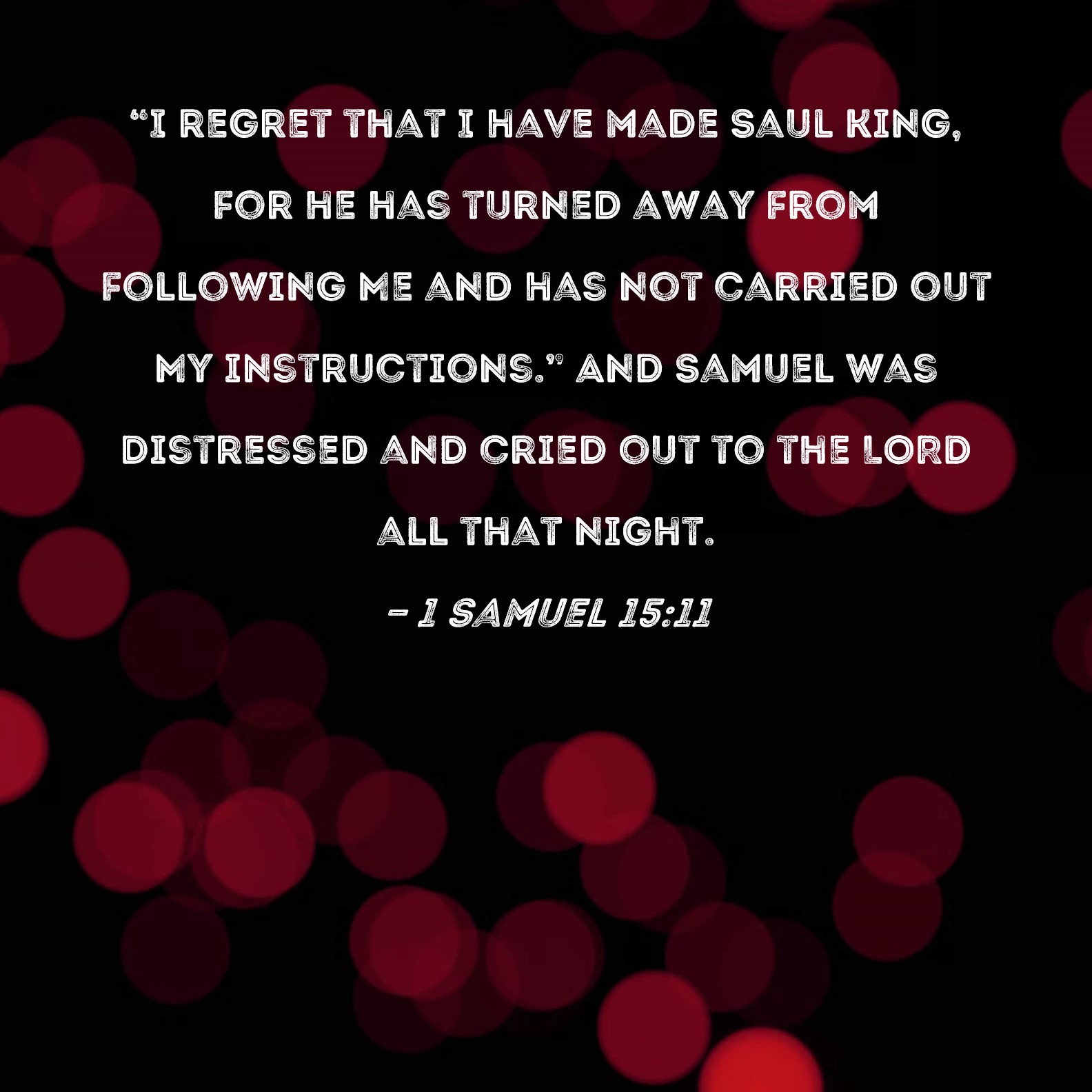 1 Samuel 15:11 "I regret that I have made Saul king, for he has turned away from following Me and has not carried out My instructions." And Samuel was distressed and cried out to the LORD all that night.