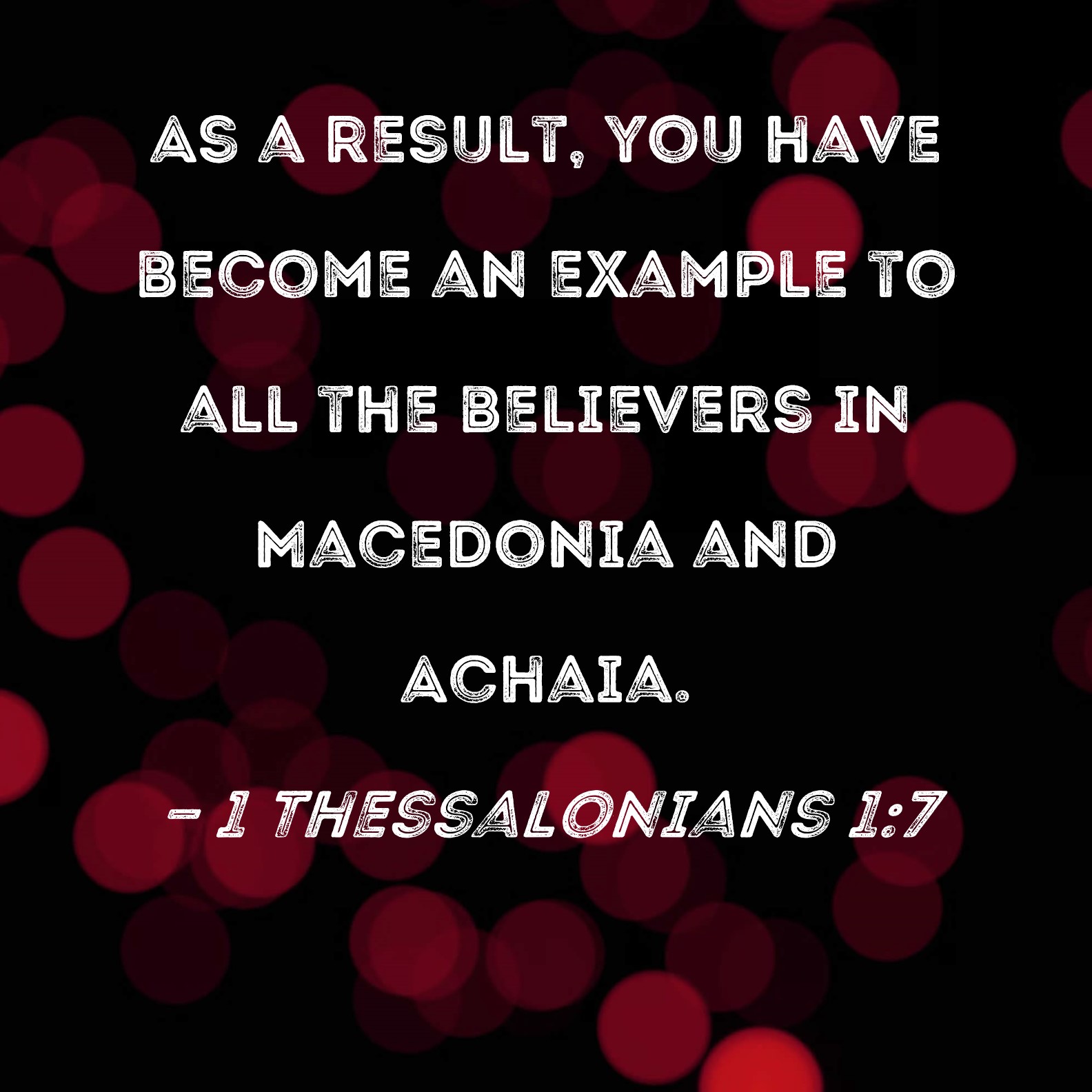 1 Thessalonians 1:7 As a result, you have become an example to all the believers in Macedonia and Achaia.