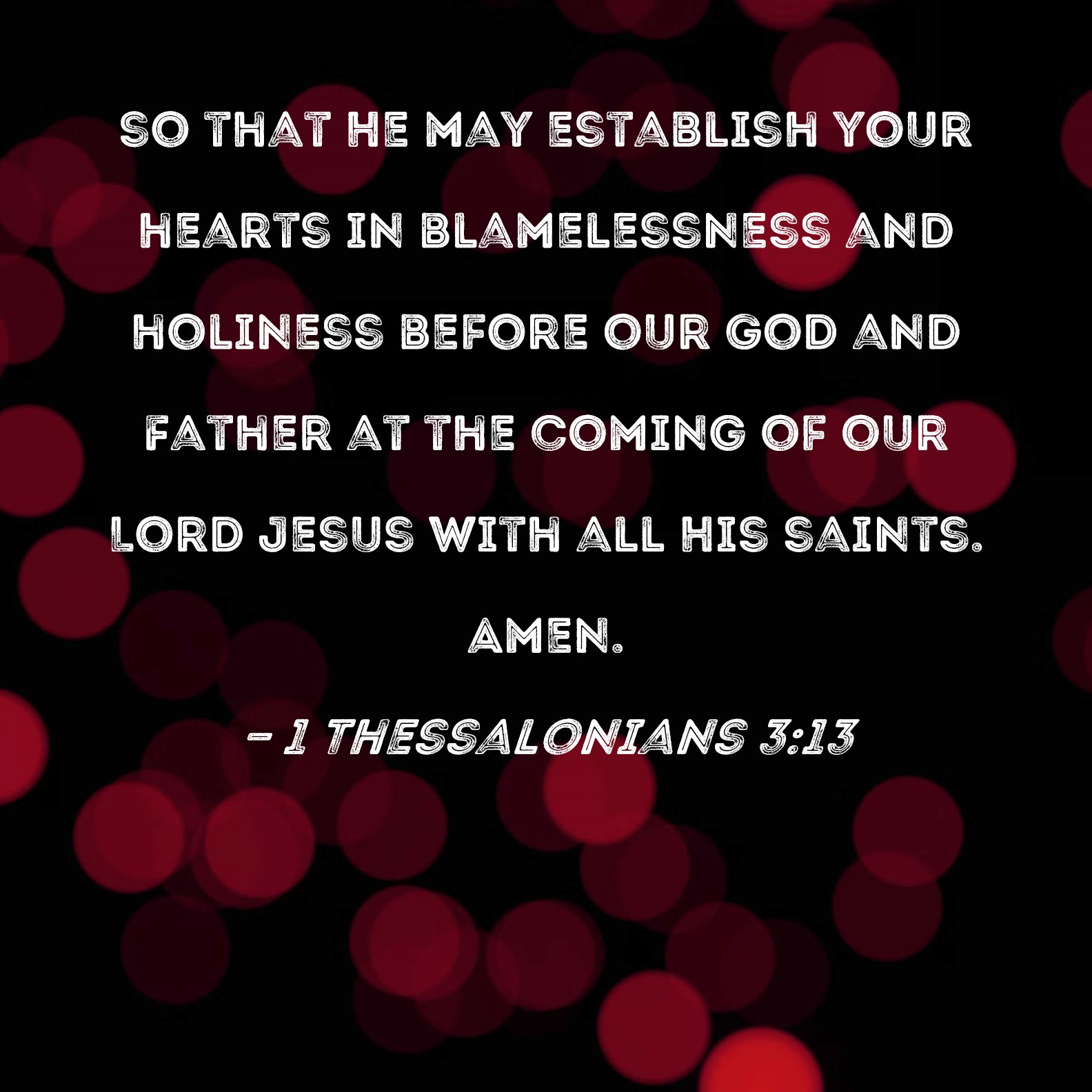 1 Thessalonians 3:13 so that He may establish your hearts in blamelessness and holiness before our God and Father at the coming of our Lord Jesus with all His saints. Amen.