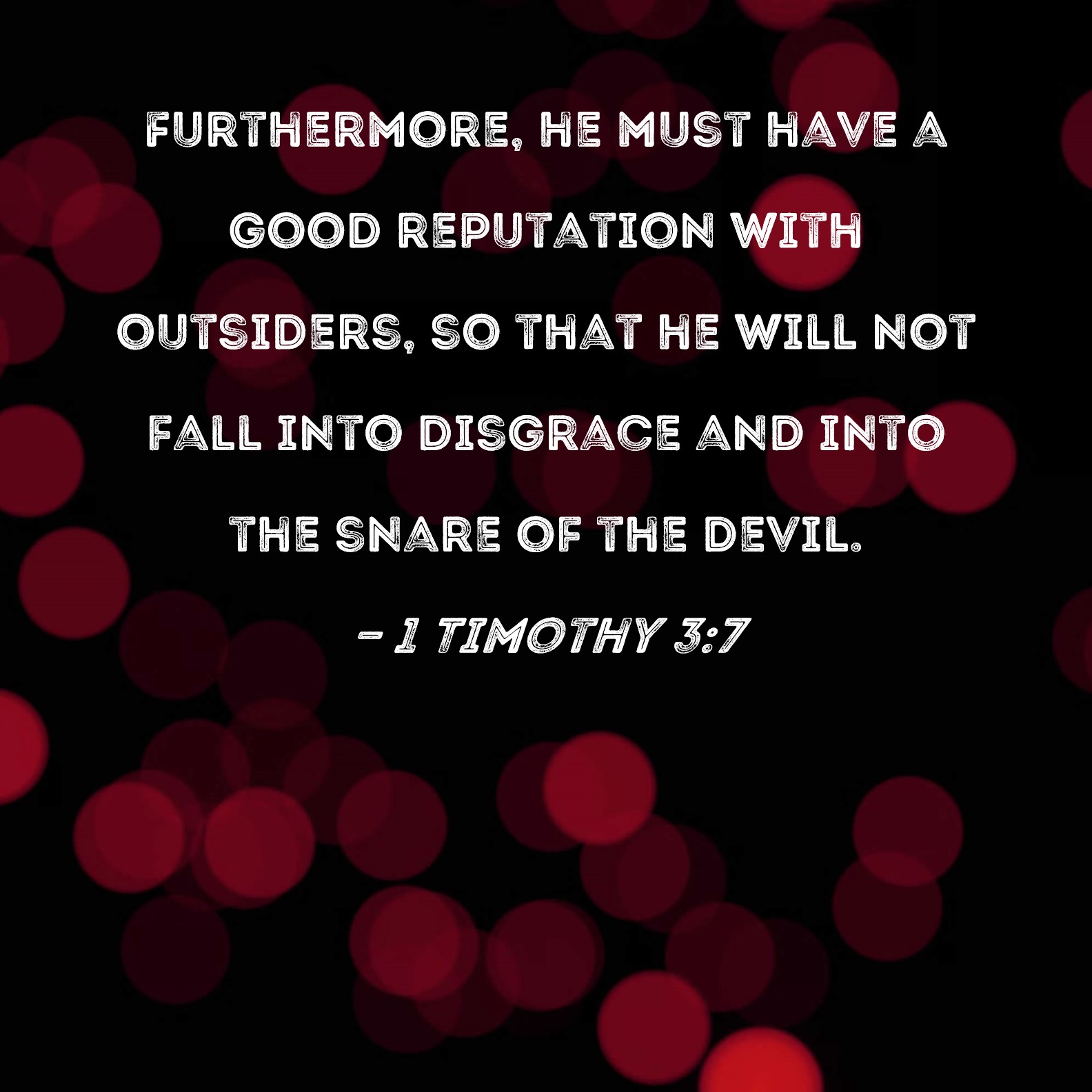 1 Timothy 3:7 Furthermore, he must have a good reputation with outsiders, so that he will not fall into disgrace and into the snare of the devil.