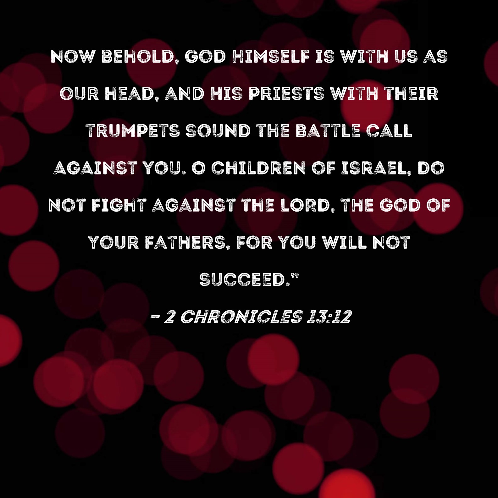 2 Chronicles 13:12 Now behold, God Himself is with us as our head, and His priests with their trumpets sound the battle call against you. O children of Israel, do not fight against the LORD, the God of your fathers, for you will not succeed."