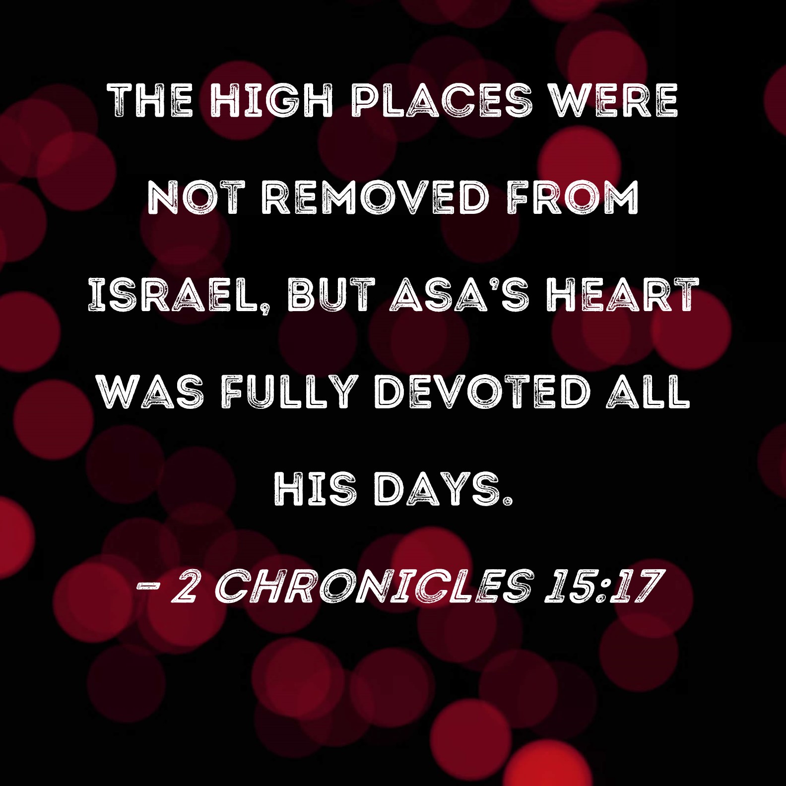 2 Chronicles 15:17 The high places were not removed from Israel, but Asa's heart was fully devoted all his days.
