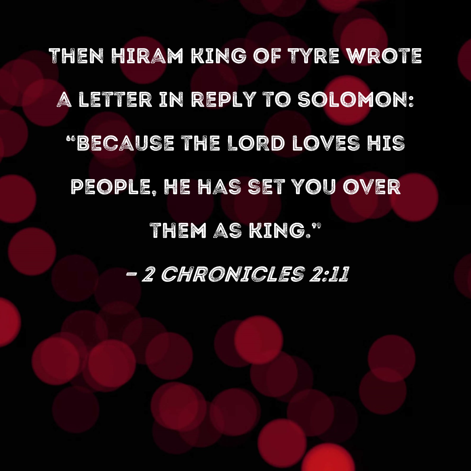 2 Chronicles 2:11 Then Hiram king of Tyre wrote a letter in reply to Solomon: "Because the LORD loves His people, He has set you over them as king."