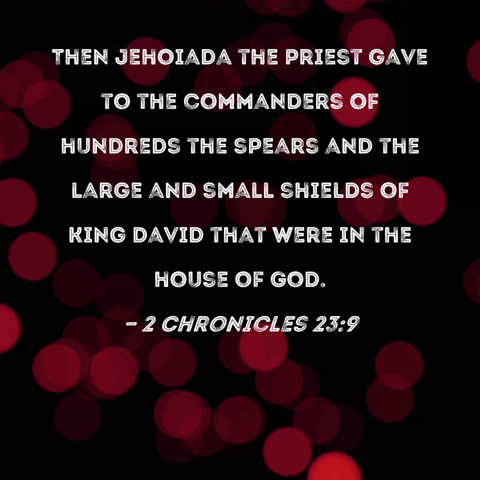 2 Chronicles 23:9 Then Jehoiada the priest gave to the commanders of hundreds the spears and the large and small shields of King David that were in the house of God.