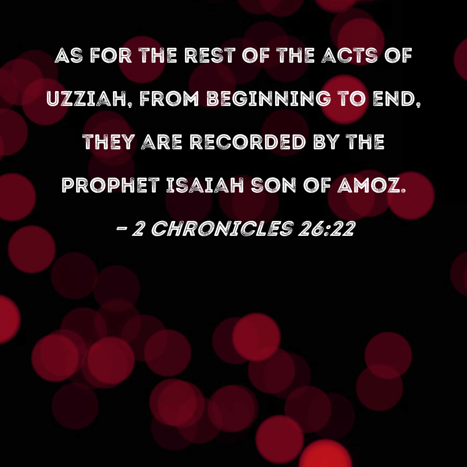 2 Chronicles 26:22 As for the rest of the acts of Uzziah, from beginning to end, they are recorded by the prophet Isaiah son of Amoz.