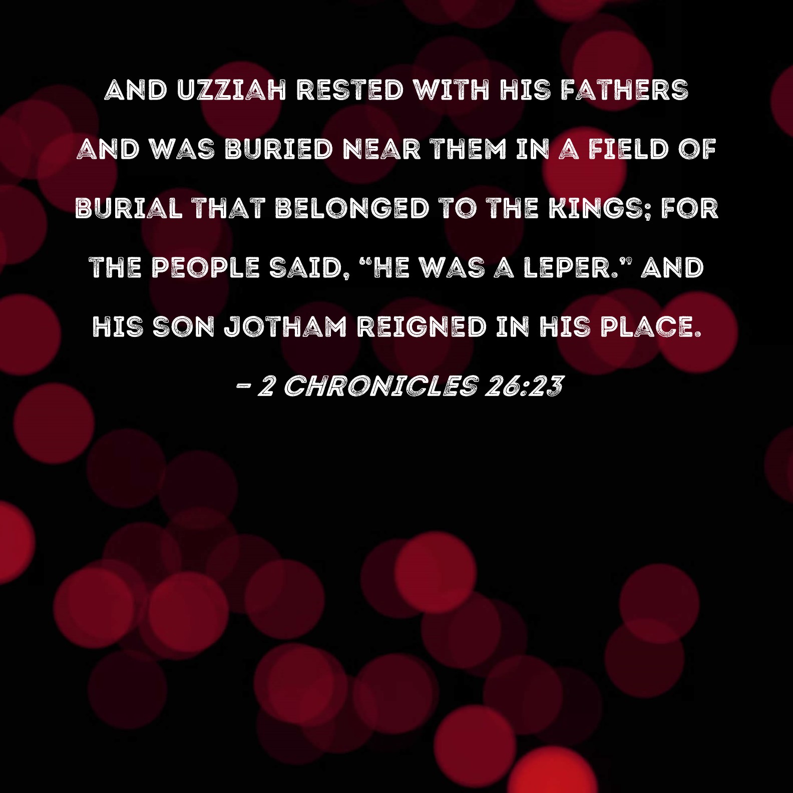 2 Chronicles 26:23 And Uzziah rested with his fathers and was buried near them in a field of burial that belonged to the kings; for the people said, "He was a leper." And his son Jotham reigned in his place.