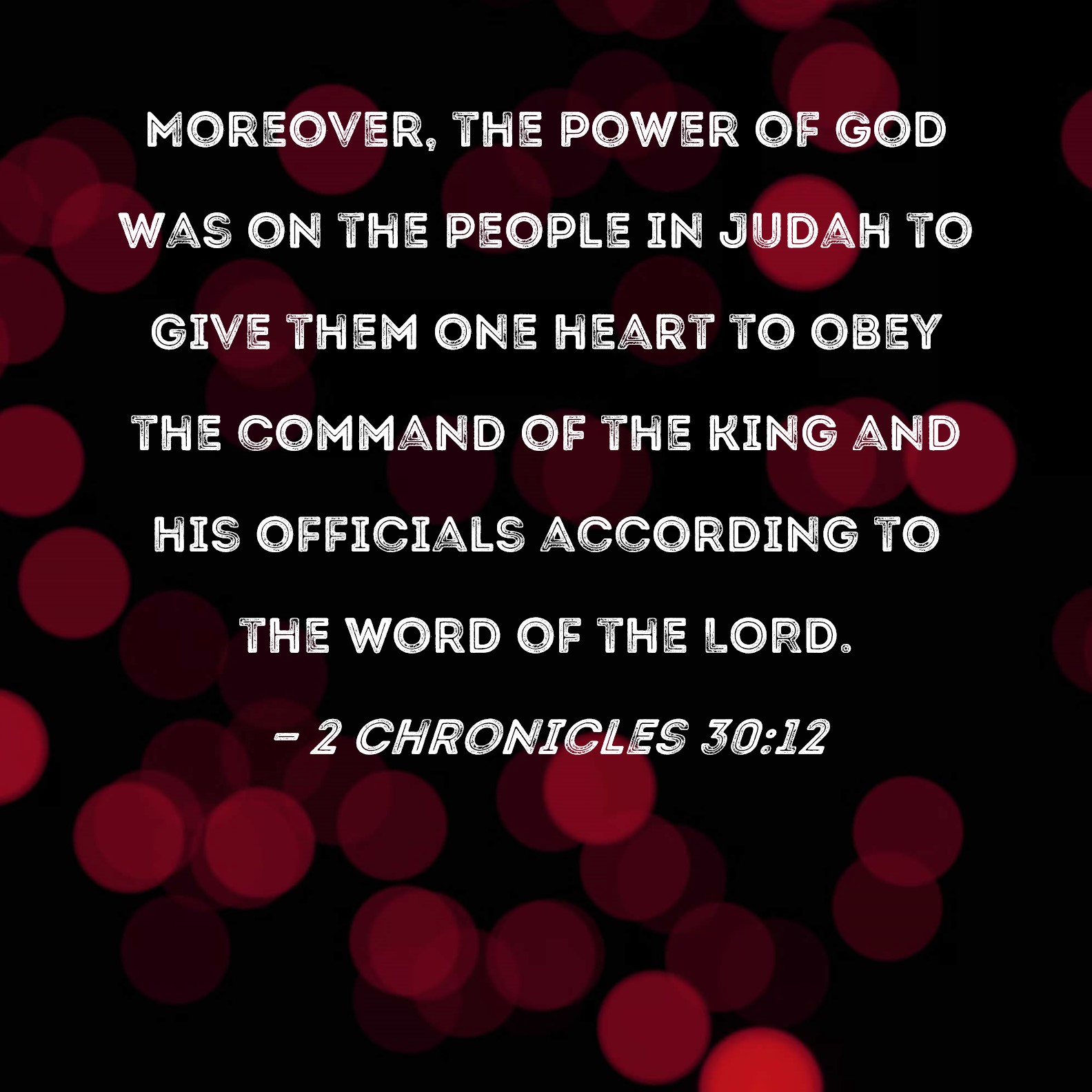 2 Chronicles 30:12 Moreover, the power of God was on the people in Judah to give them one heart to obey the command of the king and his officials according to the word of the LORD.