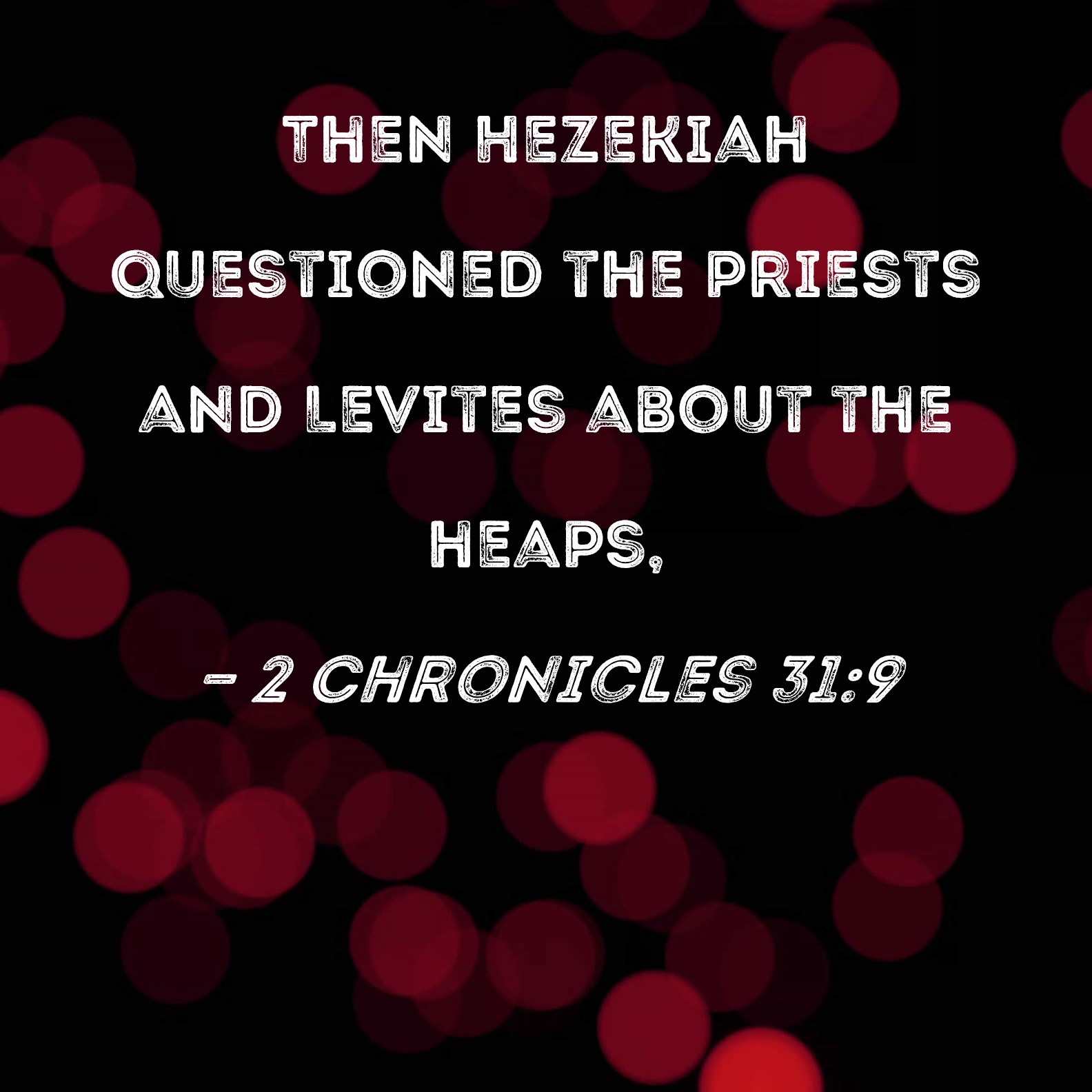 2 Chronicles 31:9 Then Hezekiah questioned the priests and Levites about the heaps,