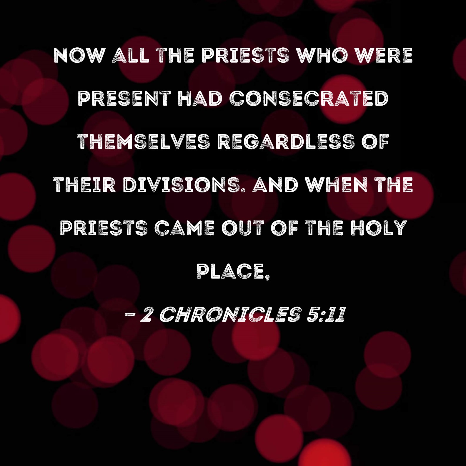 2 Chronicles 5:11 Now all the priests who were present had consecrated themselves regardless of their divisions. And when the priests came out of the Holy Place,
