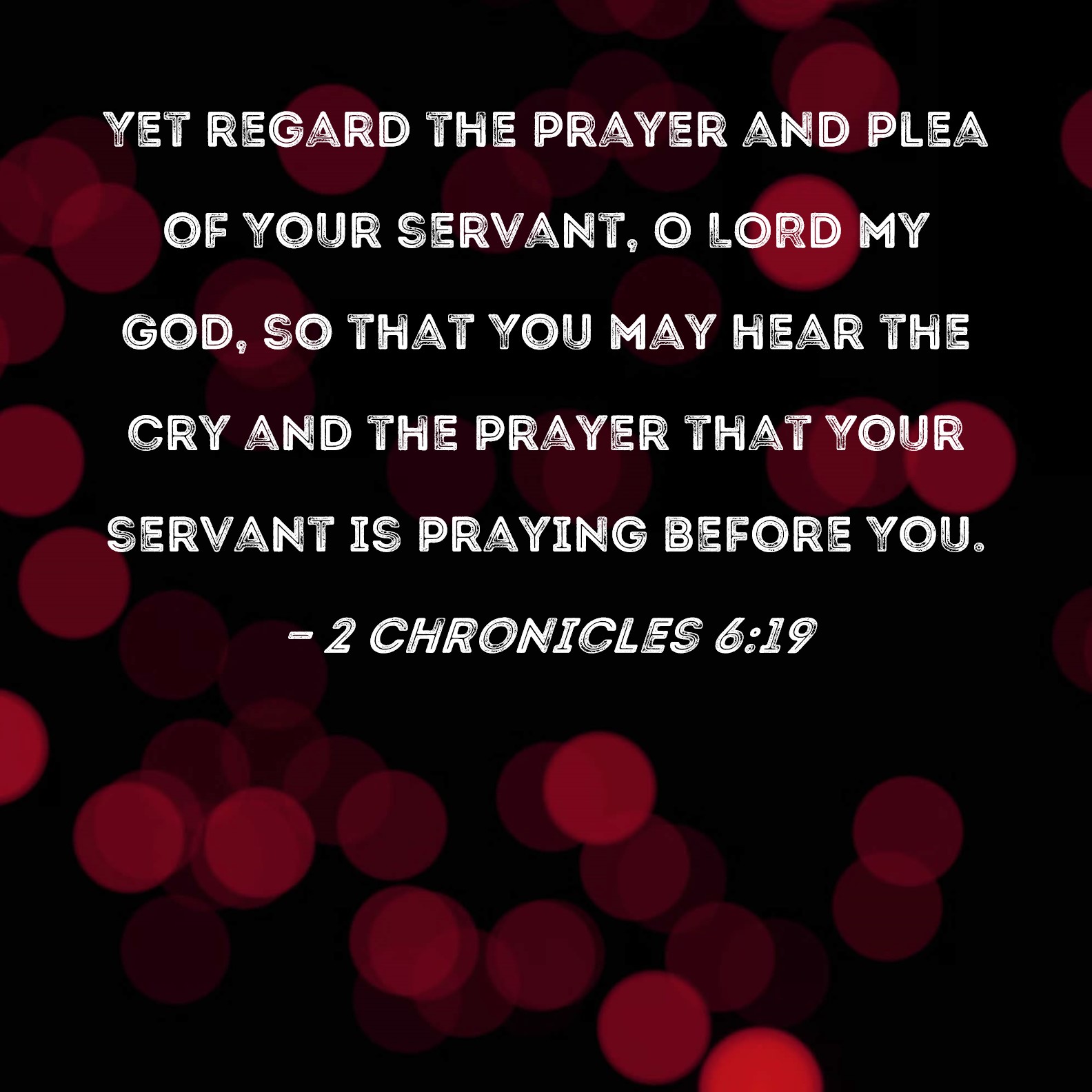 2 Chronicles 6:19 Yet regard the prayer and plea of Your servant, O LORD my God, so that You may hear the cry and the prayer that Your servant is praying before You.