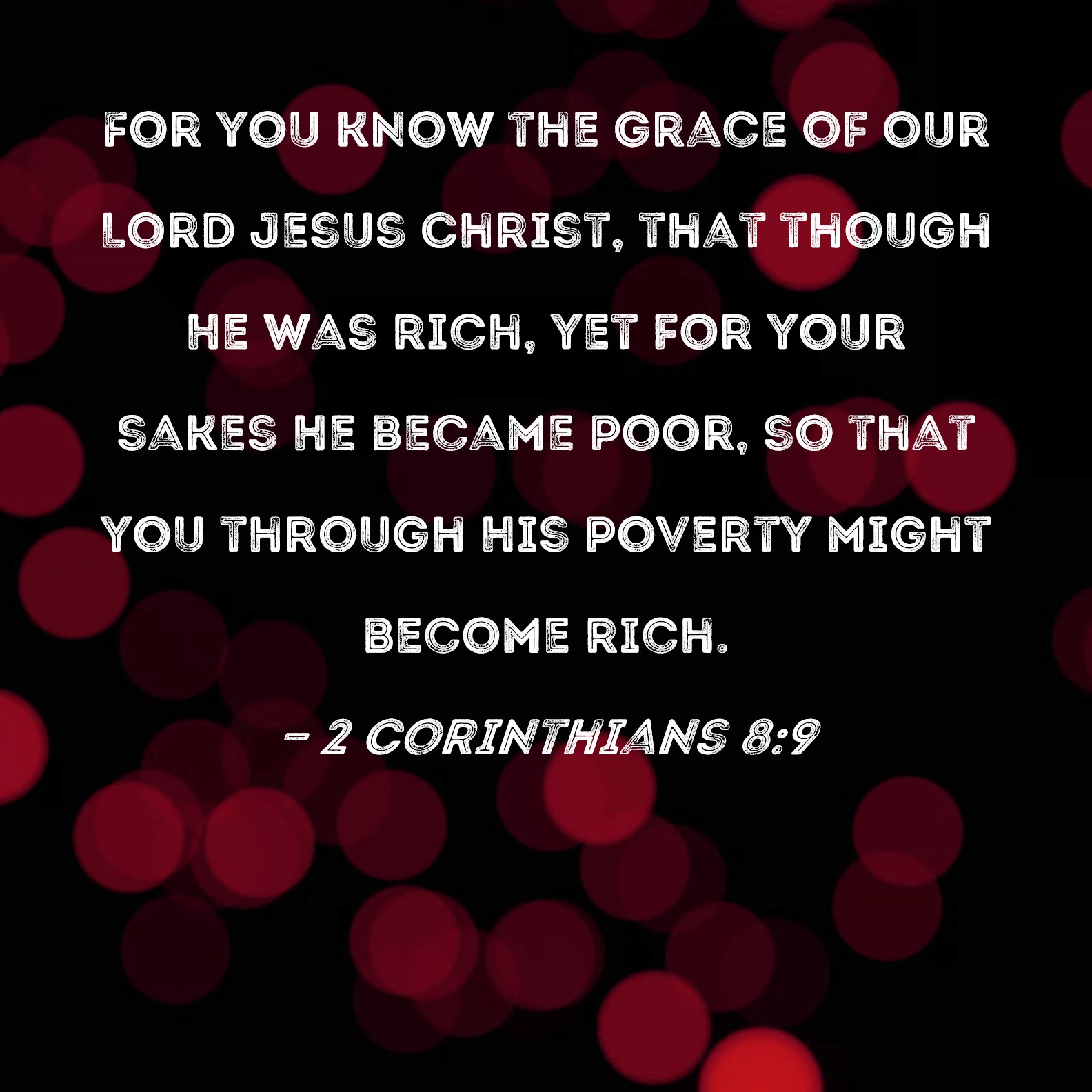 2 Corinthians 8:9 For you know the grace of our Lord Jesus Christ, that though He was rich, yet for your sakes He became poor, so that you through His poverty might become rich.