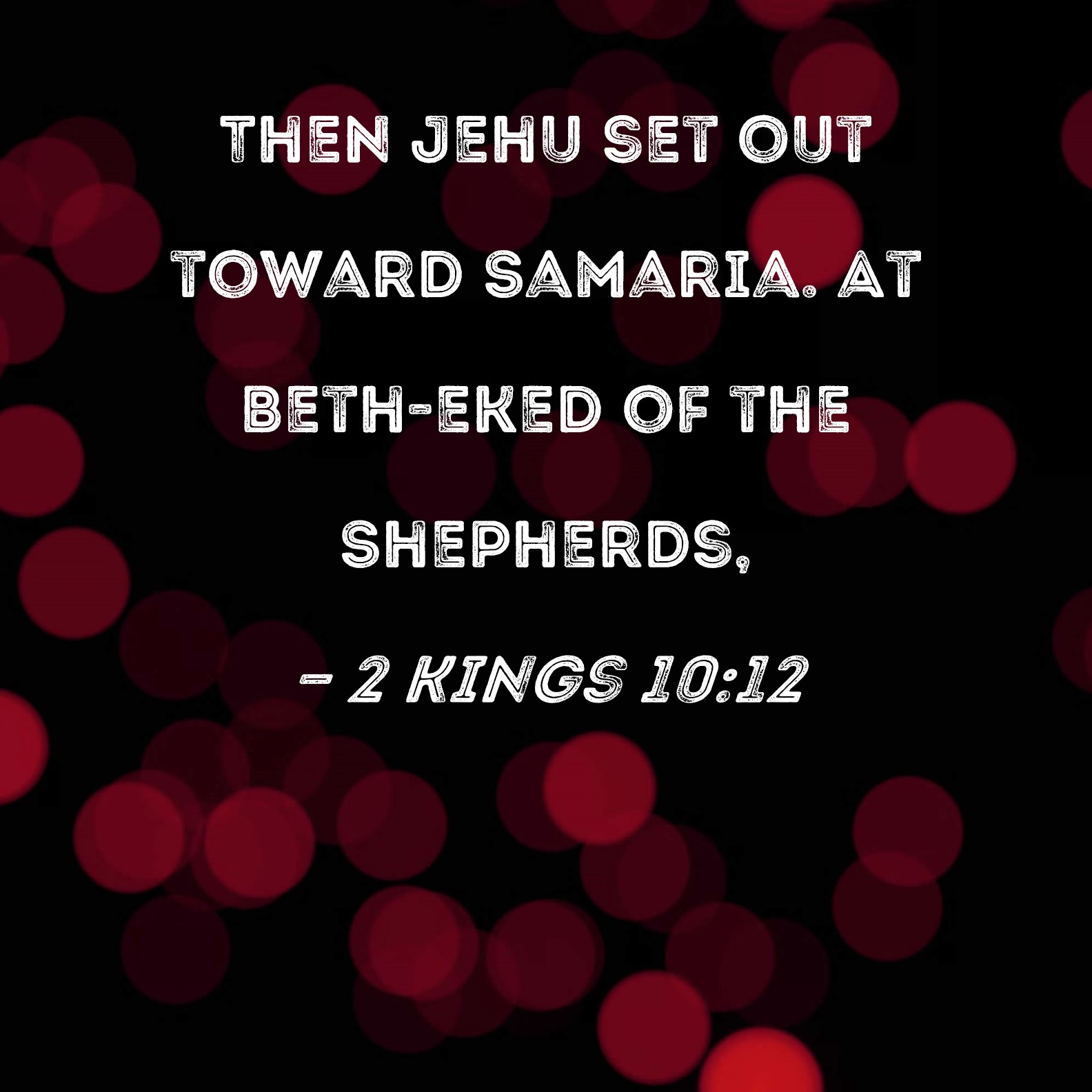 2 Kings 10:12 Then Jehu set out toward Samaria. At Beth-eked of the Shepherds,