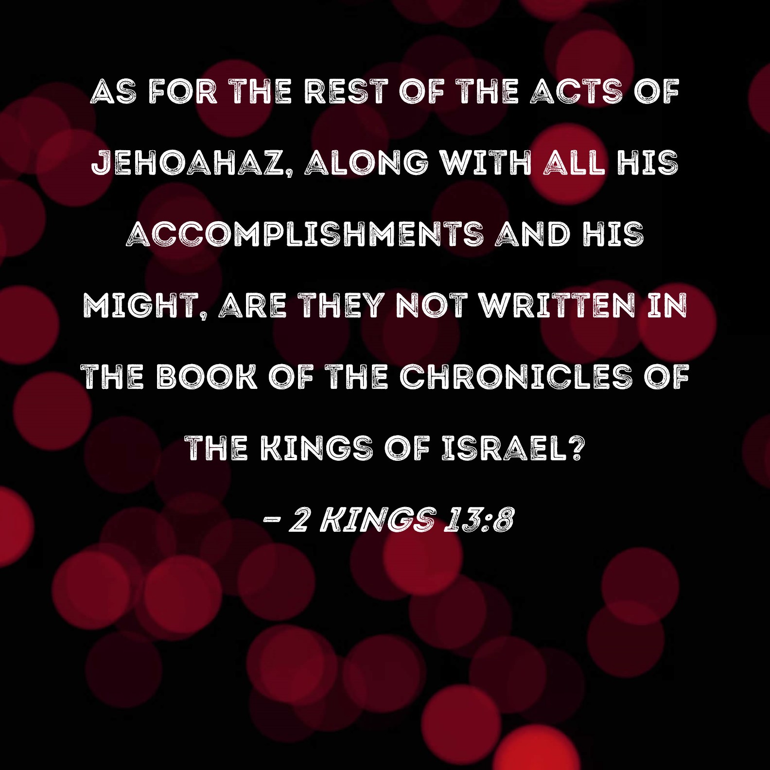 2 Kings 13:8 As for the rest of the acts of Jehoahaz, along with all his accomplishments and his might, are they not written in the Book of the Chronicles of the Kings of Israel?