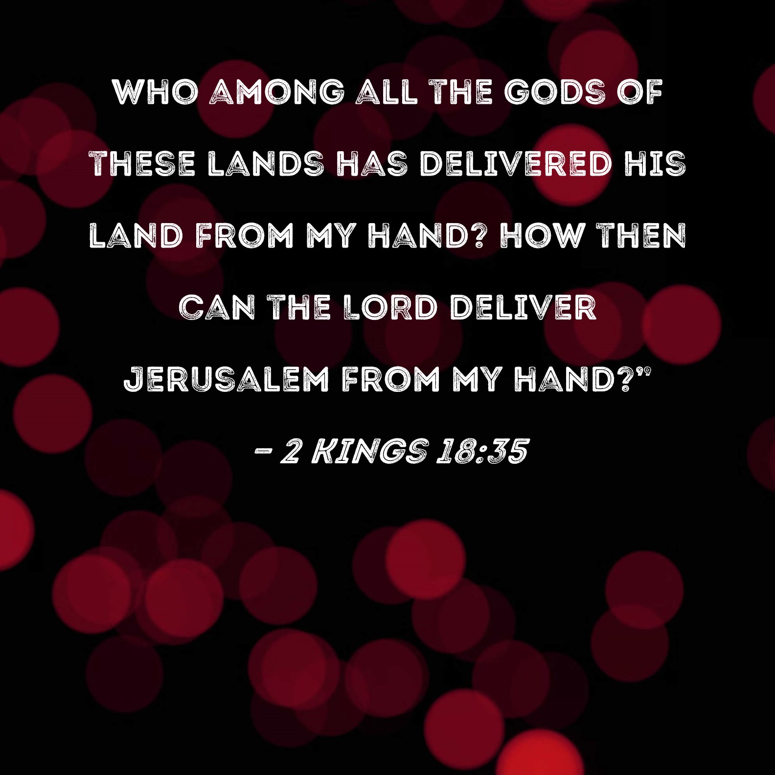 2 Kings 18:35 Who among all the gods of these lands has delivered his land from my hand? How then can the LORD deliver Jerusalem from my hand?"