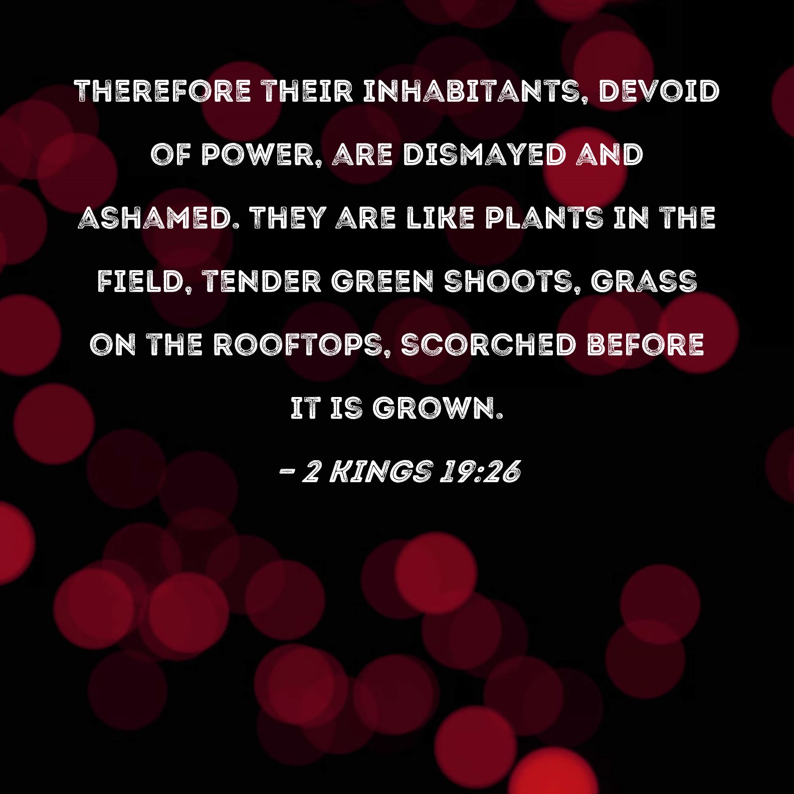 2 Kings 19:26 Therefore their inhabitants, devoid of power, are dismayed and ashamed. They are like plants in the field, tender green shoots, grass on the rooftops, scorched before it is grown.
