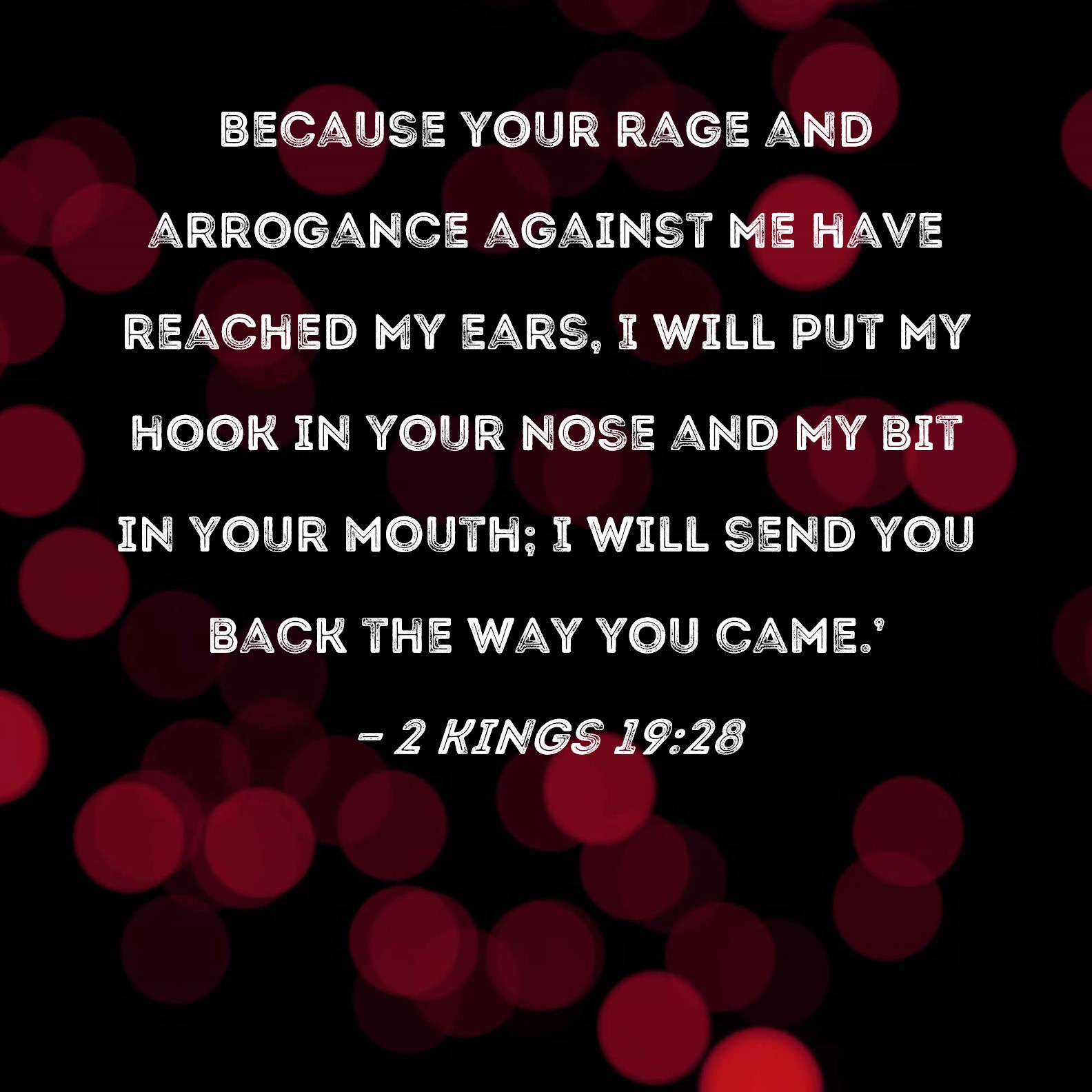 2 Kings 19:28 Because your rage and arrogance against Me have reached My ears, I will put My hook in your nose and My bit in your mouth; I will send you back the way you came.'