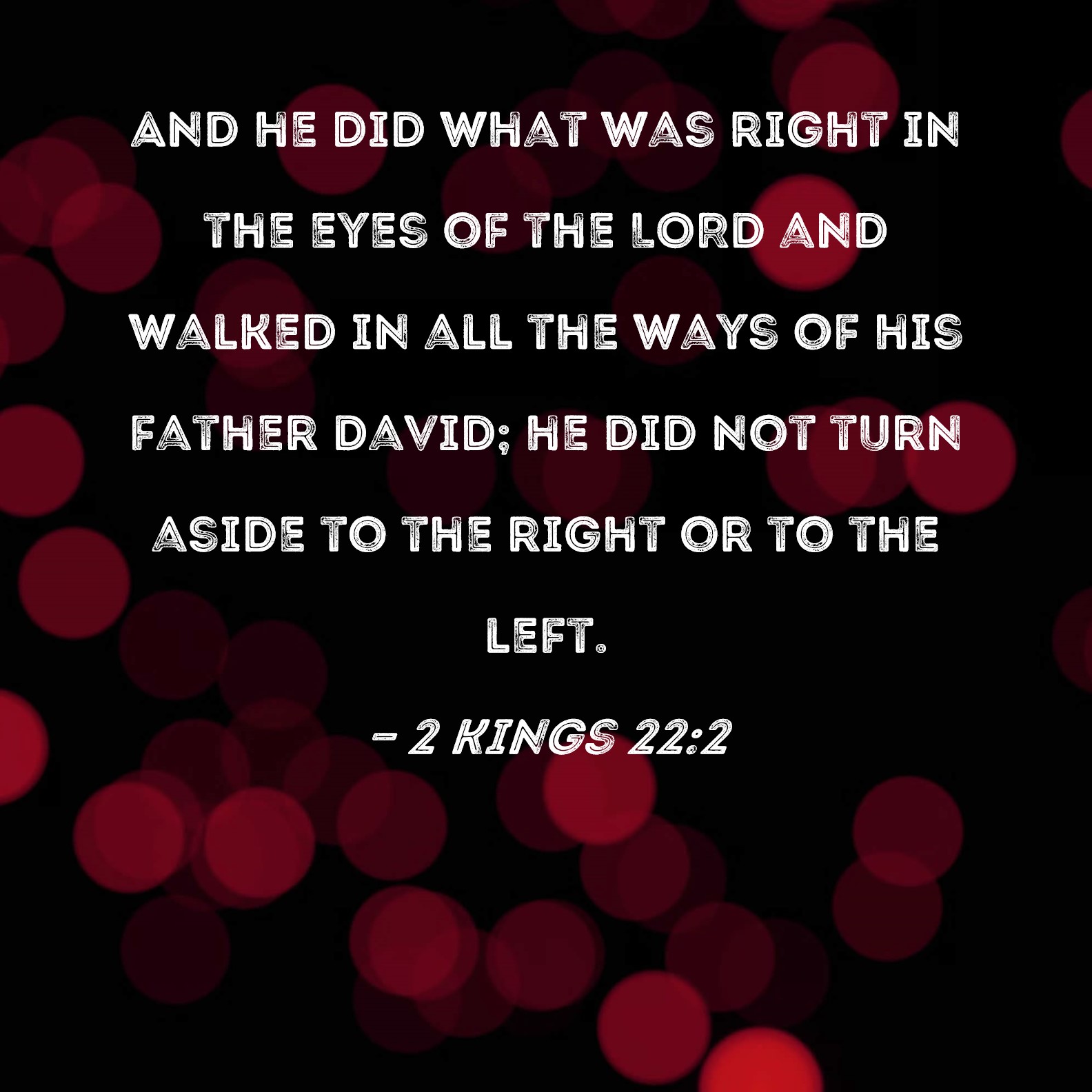 2 Kings 22:2 And he did what was right in the eyes of the LORD and walked in all the ways of his father David; he did not turn aside to the right or to the left.