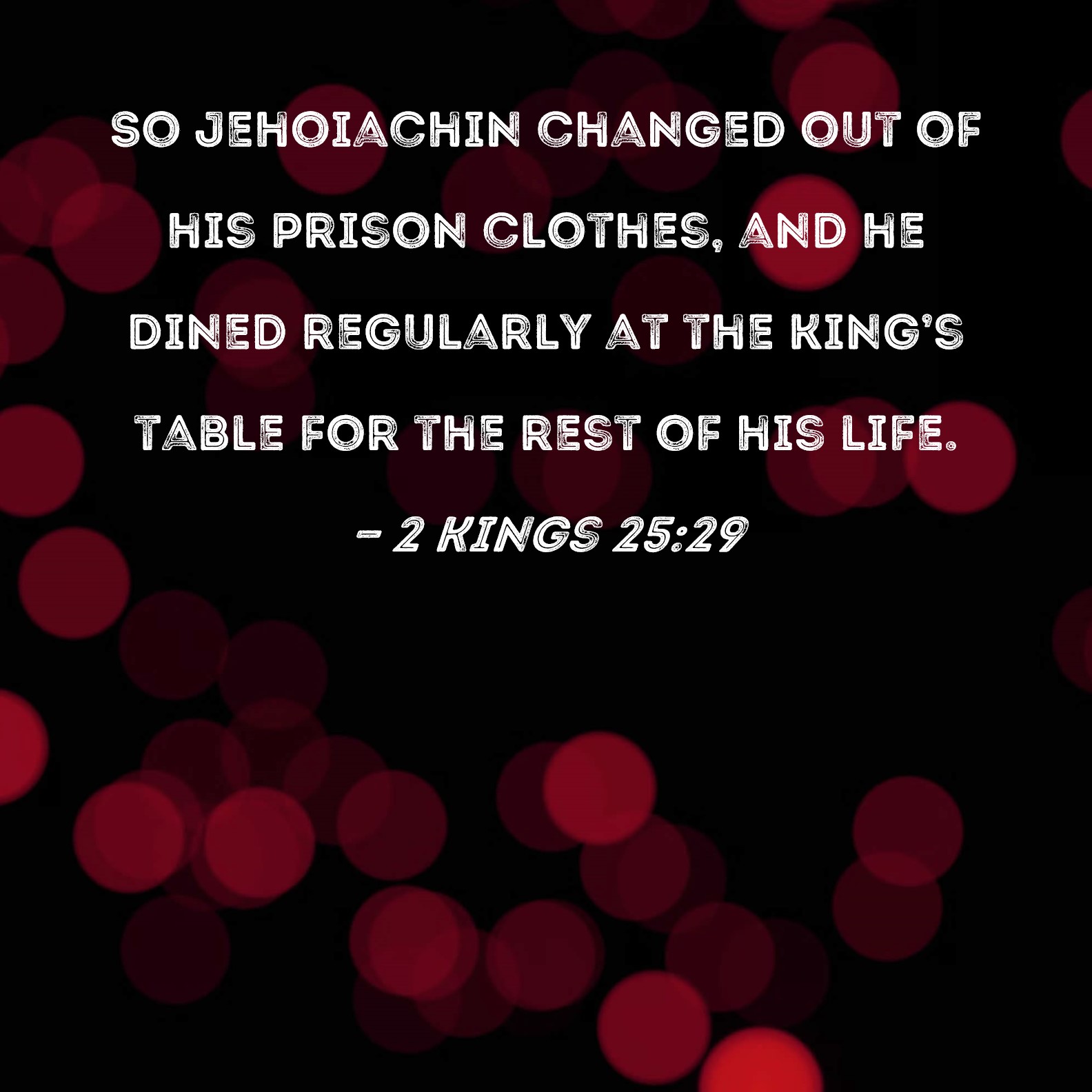 2 Kings 25:29 So Jehoiachin changed out of his prison clothes, and he dined regularly at the king's table for the rest of his life.