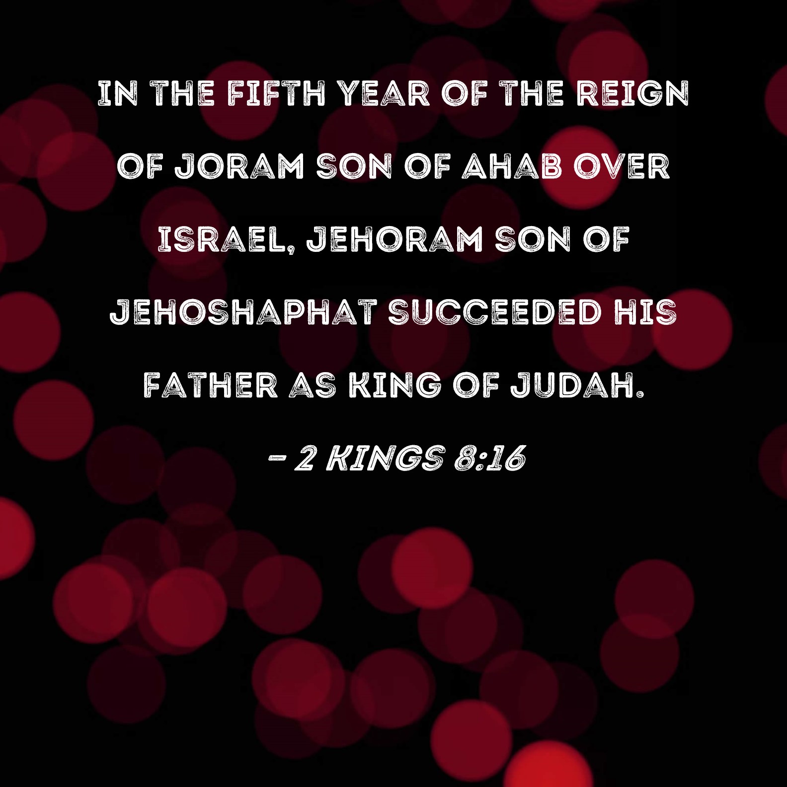2 Kings 8:16 In the fifth year of the reign of Joram son of Ahab over Israel, Jehoram son of Jehoshaphat succeeded his father as king of Judah.