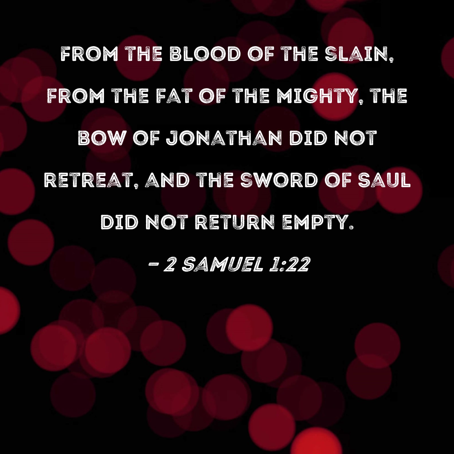 2 Samuel 1:22 From the blood of the slain, from the fat of the mighty, the bow of Jonathan did not retreat, and the sword of Saul did not return empty.
