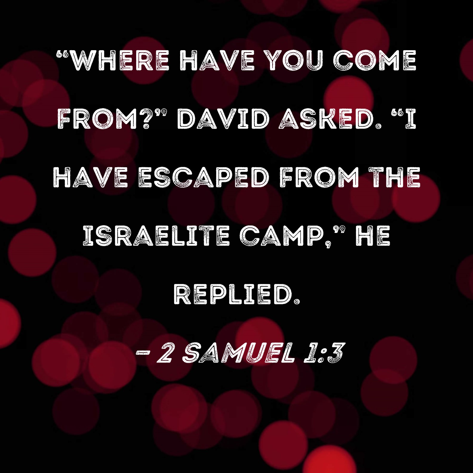 2 Samuel 1:3 "Where have you come from?" David asked. "I have escaped from the Israelite camp," he replied.