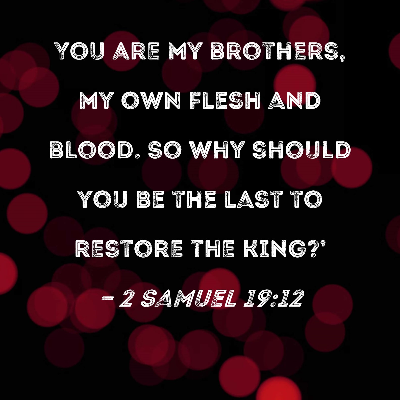 2 Samuel 19:12 You are my brothers, my own flesh and blood. So why should you be the last to restore the king?'