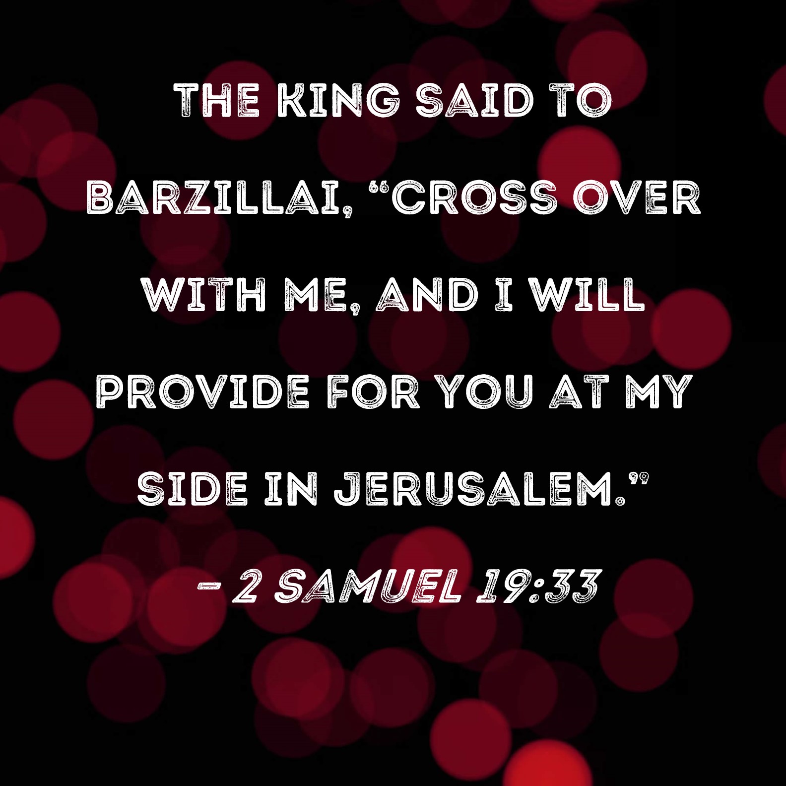 2 Samuel 19:33 The king said to Barzillai, "Cross over with me, and I will provide for you at my side in Jerusalem."