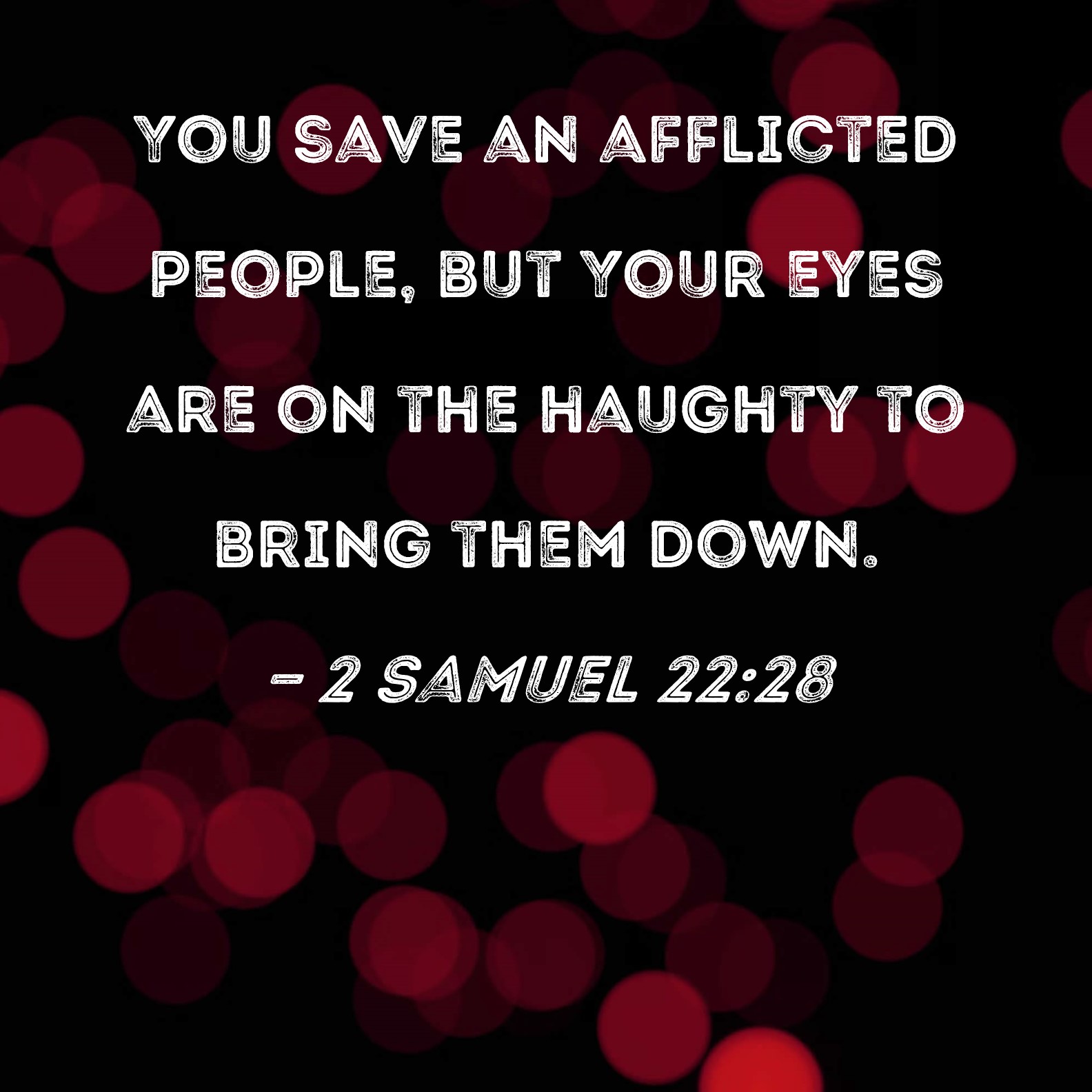 2 Samuel 22:28 You save an afflicted people, but Your eyes are on the haughty to bring them down.