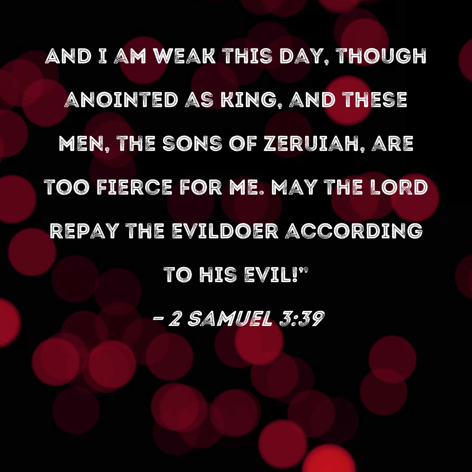 KJV:  And I am this day weak, though anointed king; and these men the sons of Zeruiah be too hard for me: the LORD shall reward the doer of evil according to his wickedness.