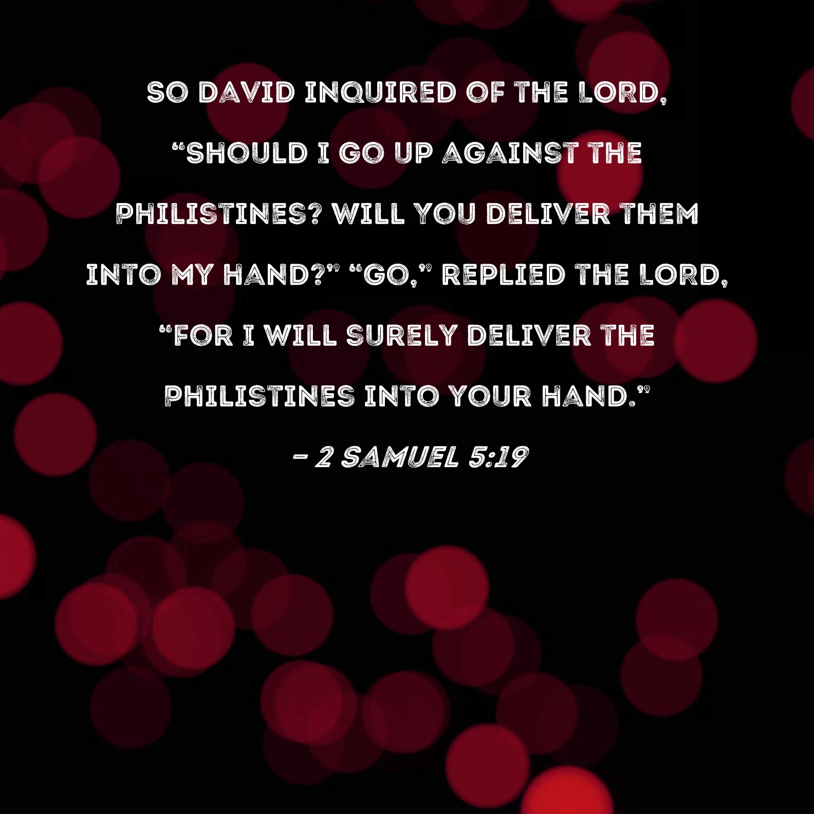 2 Samuel 5:19 So David inquired of the LORD, "Should I go up against the Philistines? Will You deliver them into my hand?" "Go," replied the LORD, "for I will surely deliver the Philistines into your hand."