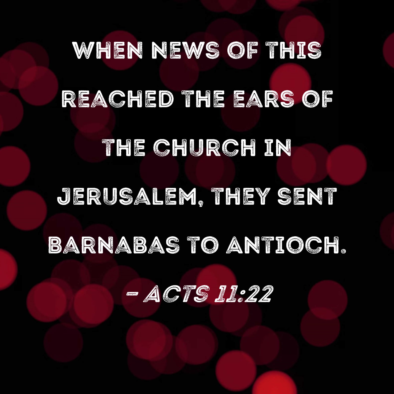 Acts 11:22 When news of this reached the ears of the church in Jerusalem, they sent Barnabas to Antioch.