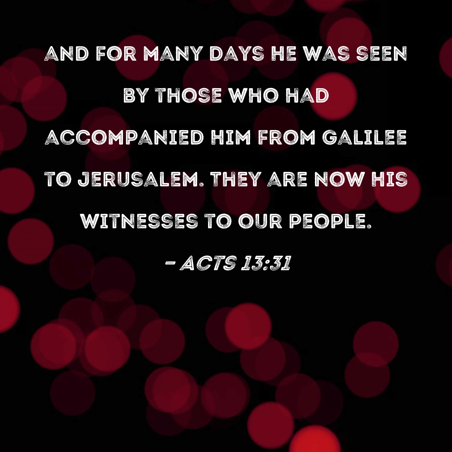 Acts 13:31 and for many days He was seen by those who had accompanied Him from Galilee to Jerusalem. They are now His witnesses to our people.