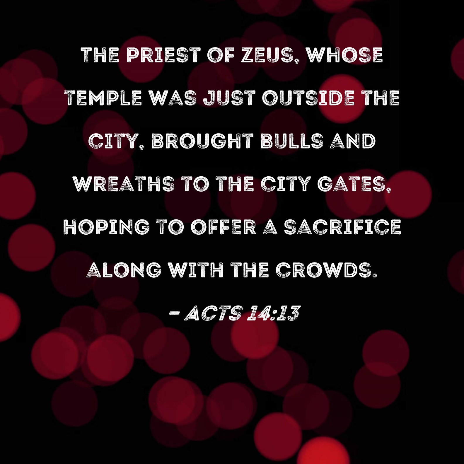 Acts 14:13 The priest of Zeus, whose temple was just outside the city, brought bulls and wreaths to the city gates, hoping to offer a sacrifice along with the crowds.