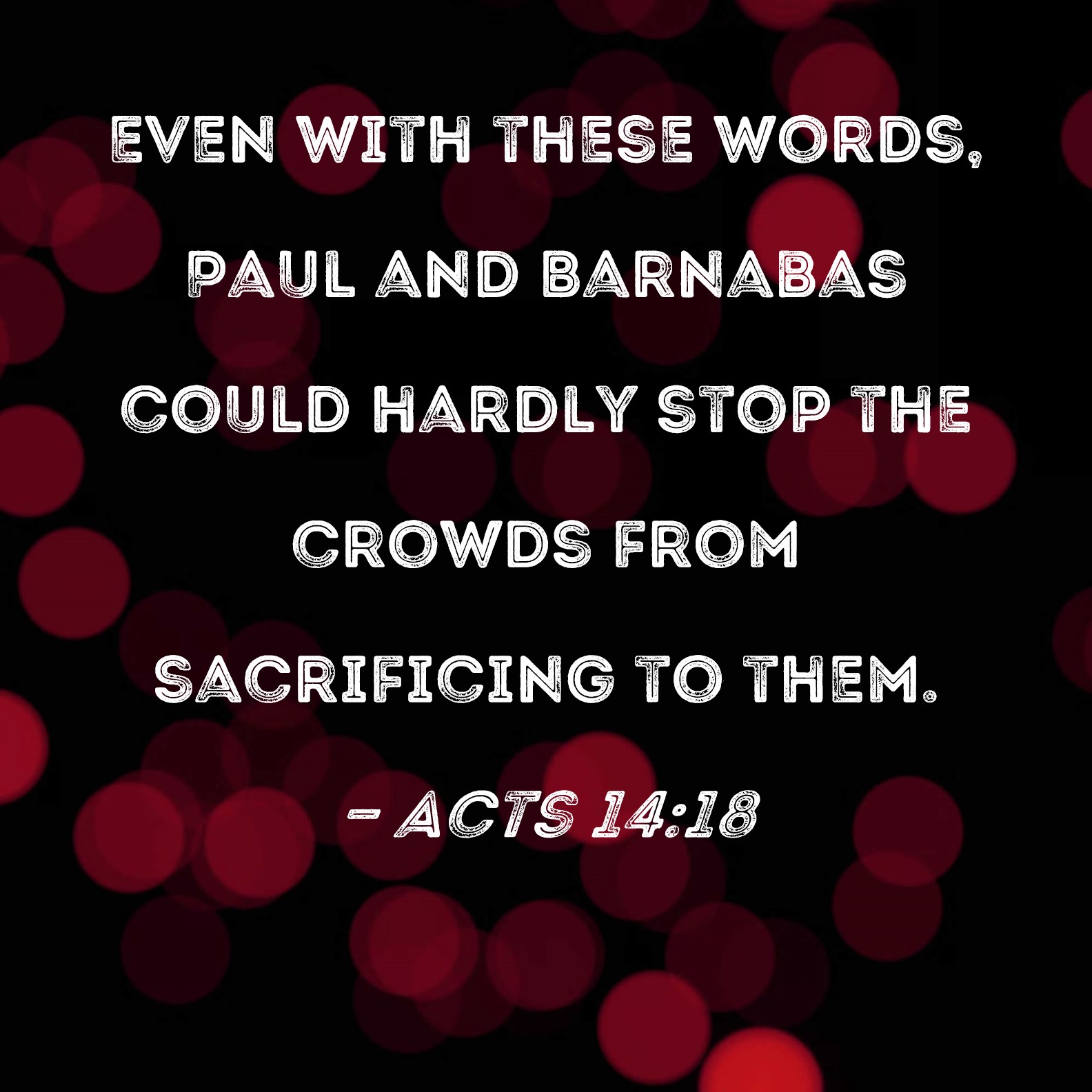 Acts 14:18 Even with these words, Paul and Barnabas could hardly stop the crowds from sacrificing to them.